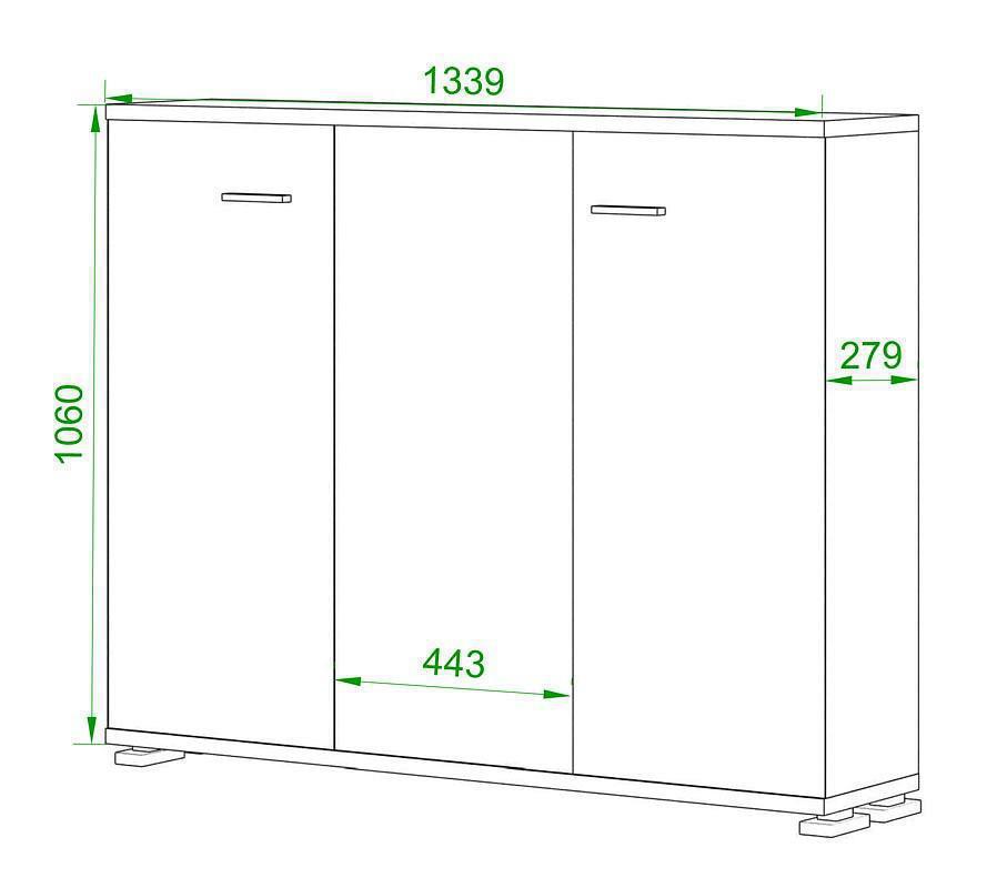 3 дверцы, 6 полок