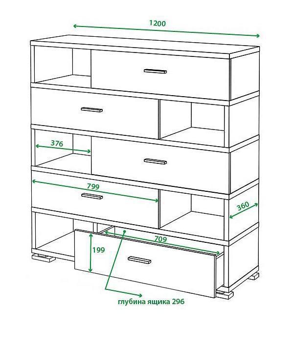 5 полок, 5 ящиков