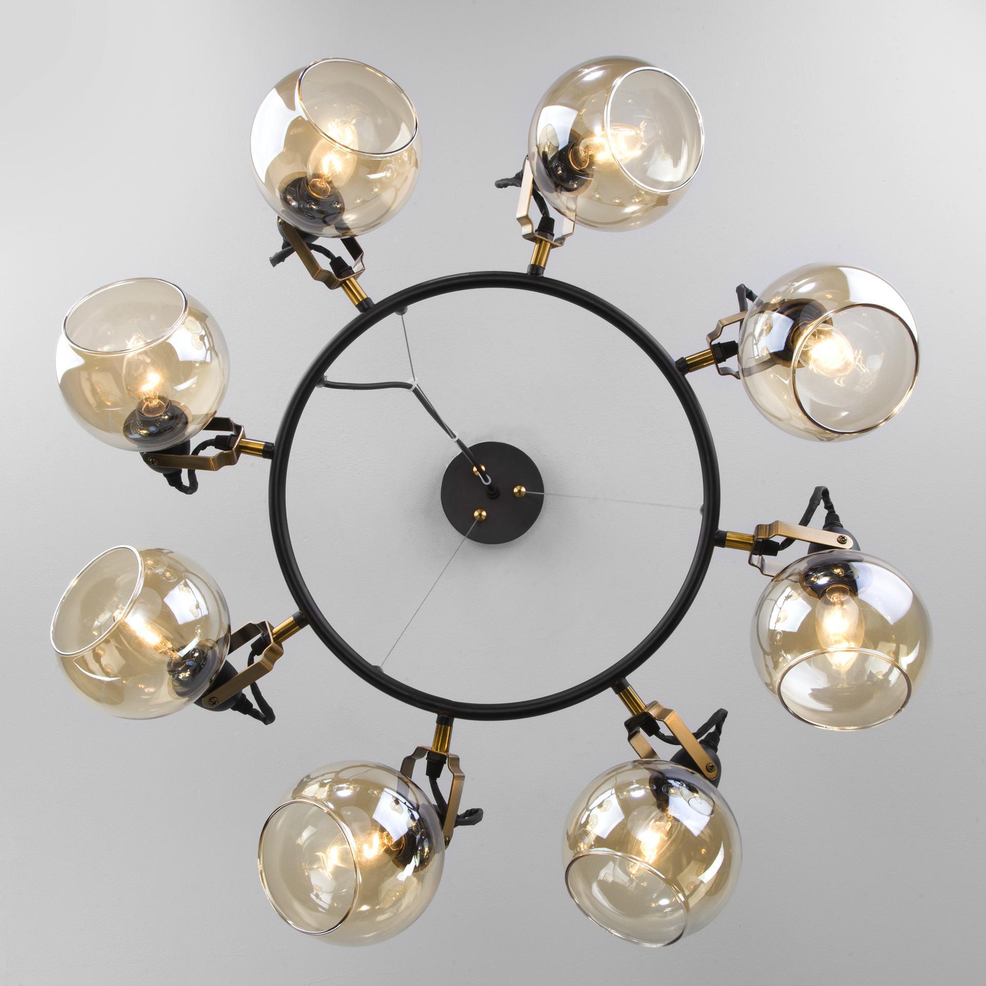 Преобразить ваше потолочное пространство и организовать качественное освещение на площади 24 м кв. поможет стильная люстра в стиле loft. Строгий внешний вид и конструктивная простота форм привнесут в современный интерьер индустриальный стиль, а гармоничный цветовой тандем из черного и бронзы подчеркнет его. В восьмирожковой люстре используются сменные лампы с цоколем E14, рассчитанные на максимальную мощность 60 Вт. Потолочный светильник оснащен стеклянными плафонами и поворотным механизмом, позволяющим направлять световой поток в нужном направлении. В производстве люстры использован высококачественный металл с надежным защитным покрытием и закаленное стекло. Наш интернет-магазин предлагает недорого купить потолочную люстру с бесплатной доставкой по Москве и России.