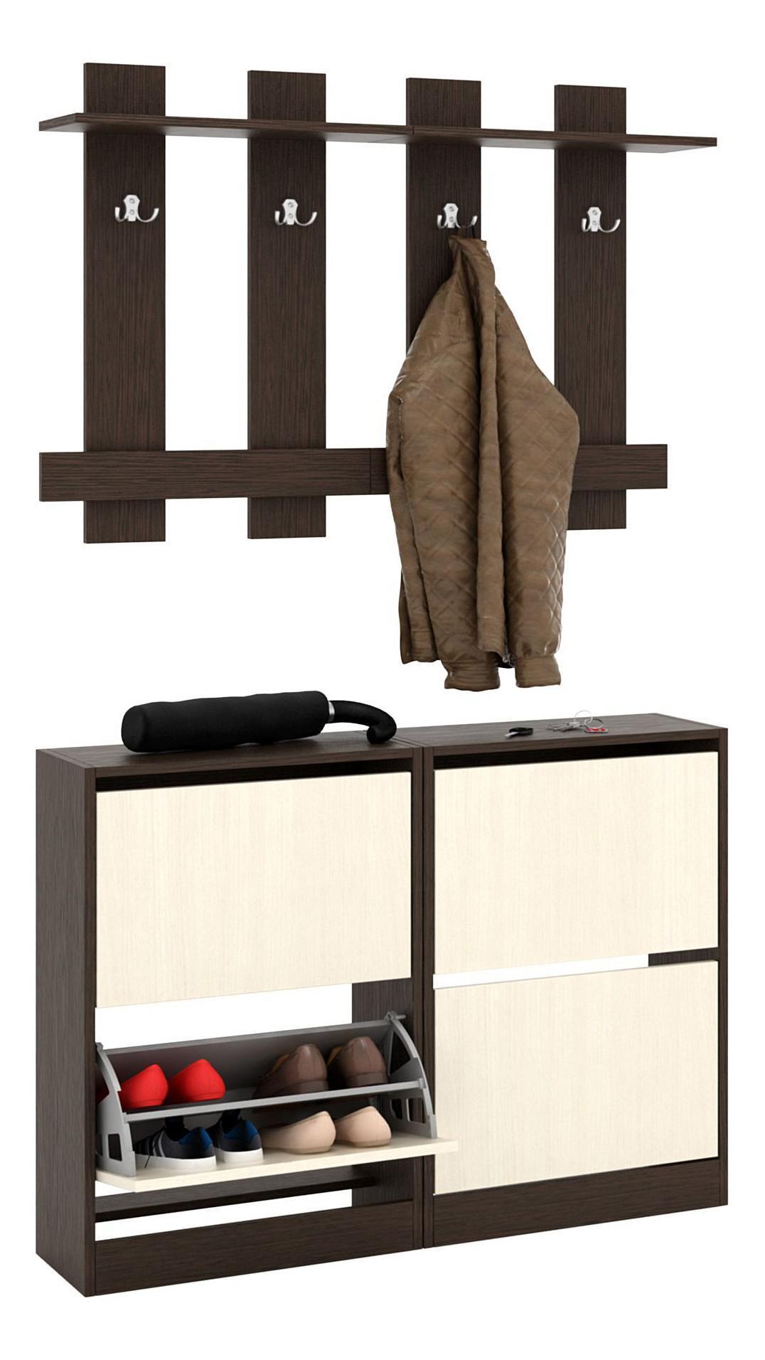 Когда все вещи находятся на своих местах – это залог красивого и аккуратного интерьера. Тем приятнее, когда зоной для хранения является вместительная и практичная вешалка с тумбой Уно-79 MAS_Uno-79-VD. Данная модель создана брендом МФ Мастер и входит в серию «Уно-79». Матовый корпус вешалки сделан из износостойкого материала (ЛДСП Е1) и окрашен в благородный оттенок «венге». В комплект входит: 2 вешалки-полки: 524x184x784 мм,, 2 тумбы для обуви: 522x220x818 мм. Вешалка с тумбой Уно-79 стоит 6398 руб.