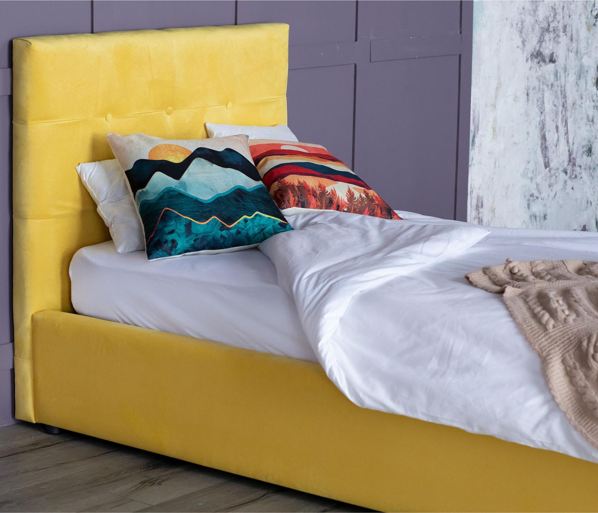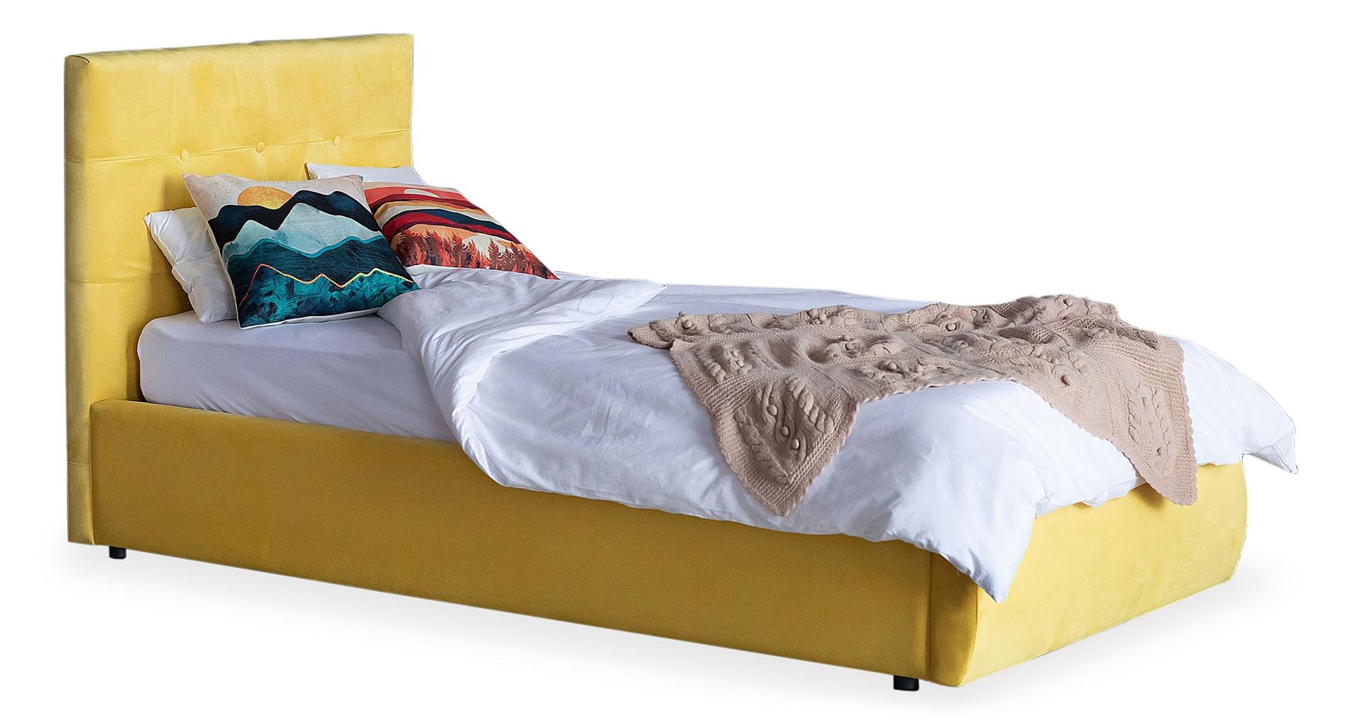 Кровать односпальная Selesta с матрасом PROMO B COCOS 2000x900 – хорошее решение для интерьера вашей спальни. Данная модель создана брендом Наша мебель (Россия) и входит в серию Selesta. Ее фактические размеры соответствуют 1040 мм в высоту, 1060 мм в ширину, а длина кровати составляет 2210 мм. Размеры спального места: 2000 мм в длину и 900 мм в ширину. Прочный и надежный корпус (ДСП, оргалит велюр, ЖЕЛТЫЙ) отлично подчеркивает элегантный дизайн модели. В комплект также входит матрас - 2000x900, основание ортопедическое, подъемный механизм, ящик для белья. Стоимость изделия 24990 руб. Приятных покупок!