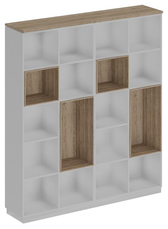 У вас много книг или вы хотите интересно обыграть интерьер, украсив его оригинальным декором? Отличным выбором будет UTX_SI-303-DS-BP - стеллаж City СИ 303, разработанный представителями компании Юнитекс в рамках коллекции «City». Благодаря оптимальной форме, он займет совсем немного места, при этом вы сможете разместить в нем все необходимое (ширина стеллажа 1802 мм, высота 2034 мм, глубина 400 мм). Стеллаж изготовлен из современных материалов (ДВП, ЛДСП Е1, HPL пластик) и имеет корпус выигрышного оттенка (белый премиум, дуб гладстоун светлый). Производитель предлагает за цену 75385 руб. стеллаж, в комплекте с которым идут 14 полок.