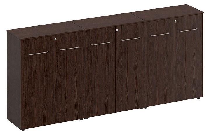 Тумба состоит из трех закрытых шкафов для документов под общим топом.