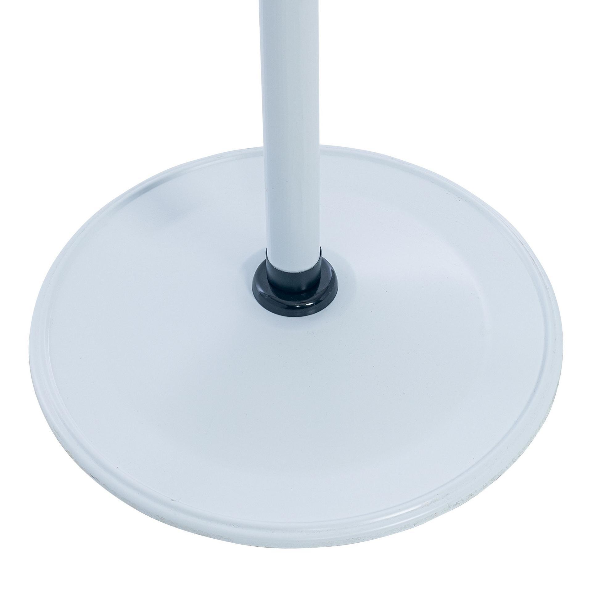 Внешне это просто металлическая труба с длинными и короткими крючками в верхней части изделия. Внизу находится круглое основание, которое делает вешалку максимально устойчивой.