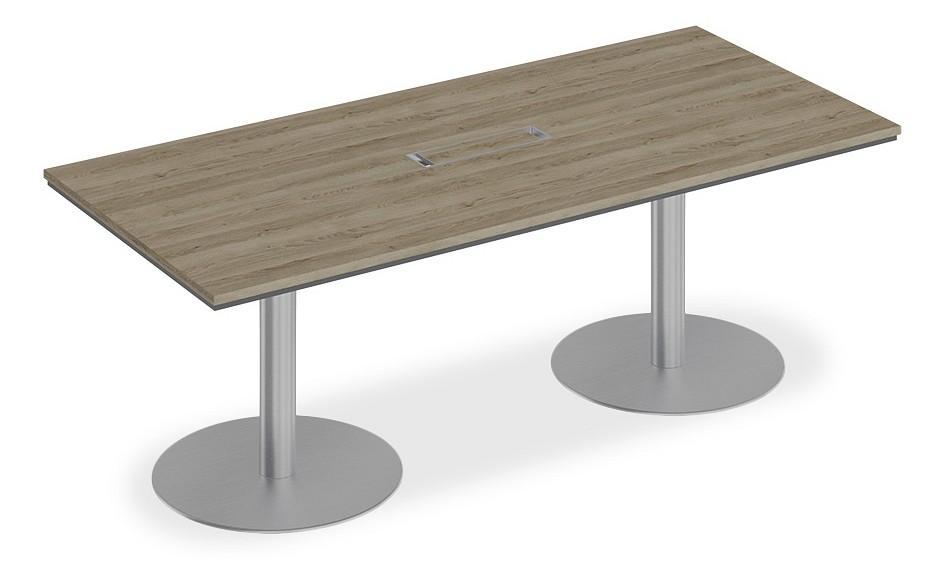 Стол состоит из столешницы, заглушки кабель-канала и двух вертикальных опор - колонн на круглом утяжеленном основании.