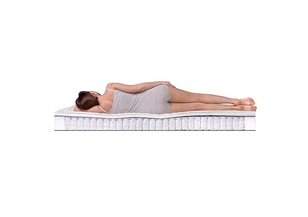 Простота и удобство на независимом пружинном блоке. Современный нетканый материал холлофайбер, обладающий высокой жёсткостью, обеспечивает сбалансированное распределение массы тела по поверхности матраса, оказывая профилактический эффект, предупреждающий от возможных проблем в области спины. Единственный слой наполнителя расположен на пружинном механизме TFK, конструкция которого гасит нежелательные колебания матраса и способствуют крепкому и здоровому сну. Защитная прослойка из натурального льноджутового волокна препятствует губительным контактам металлических пружин с наполнителем, продлевая срок службы матраса. Для сохранения формы матраса в первозданном виде, рекомендуется на короткое время переворачивать его и спать на поверхности без наполнителя.