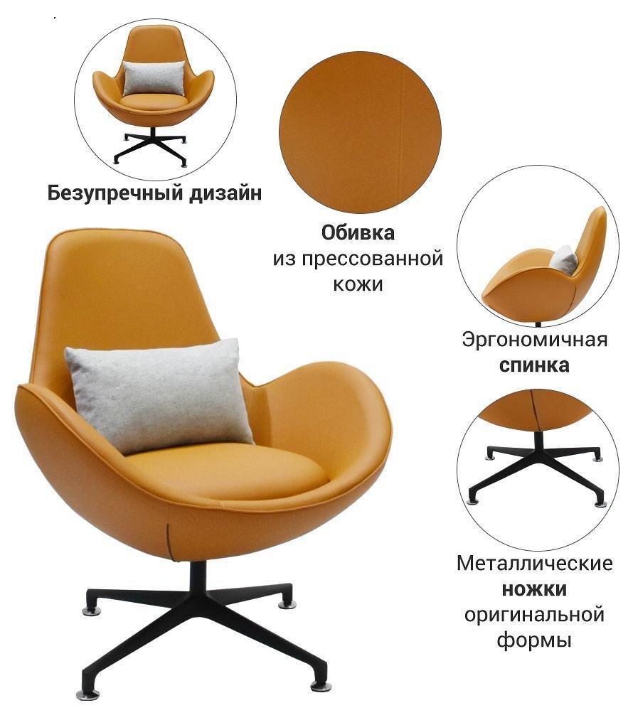 Мягкое кресло Oscar - необычное дизайнерское решение для интерьера. Плавные линии сидения, спинки и подлокотников придают креслу элегантности. Обивка кресла выполнена из качественной прессованной кожи трендовых оттенков. Устойчивые ножки кресла закреплены на крестовине, а сама конструкция снабжена поворотным механизмом. Подушка в комплект не выходит.