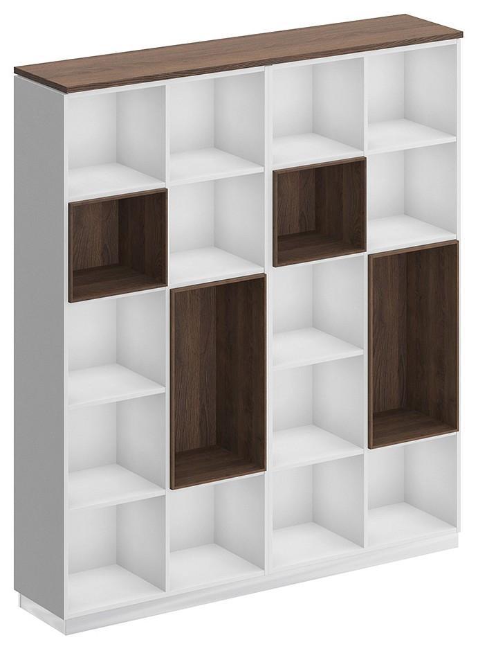 Стеллаж является стенкой из двух стеллажей под общим топом. Декоративный зазор между топом и боковыми стенками стеллажей.