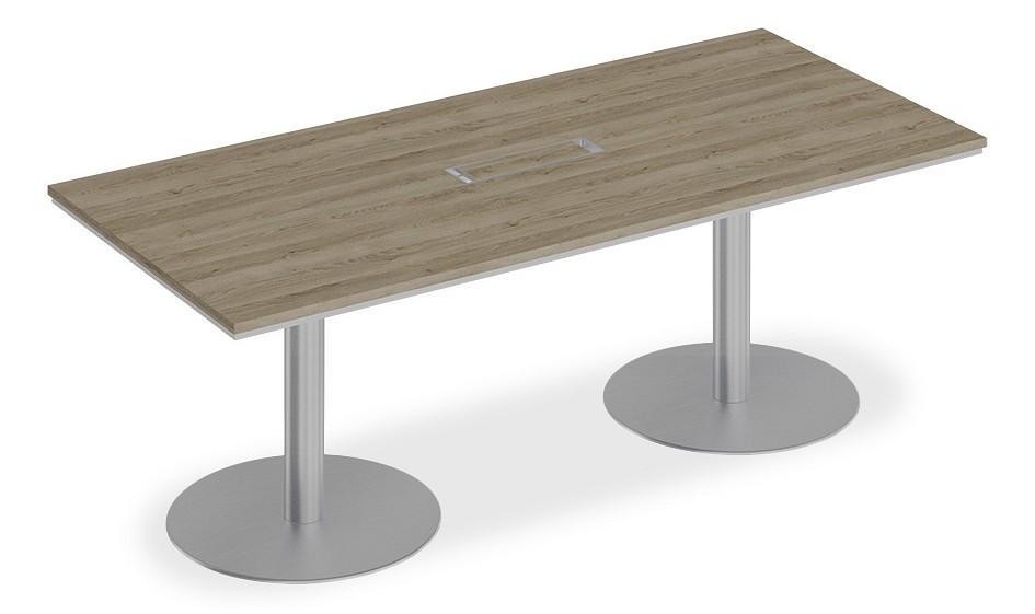 Стол состоит из столешницы, заглушки кабель-канала и двух вертикальных опор - колонн на круглом утяжеленном основании.