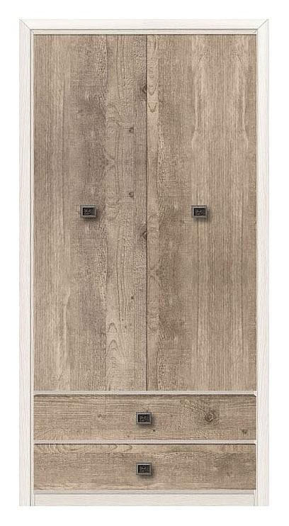 Практичный шкаф Коен имеет отделение для одежды за распашными дверями и отделение с двумя выдвижными ящиками.