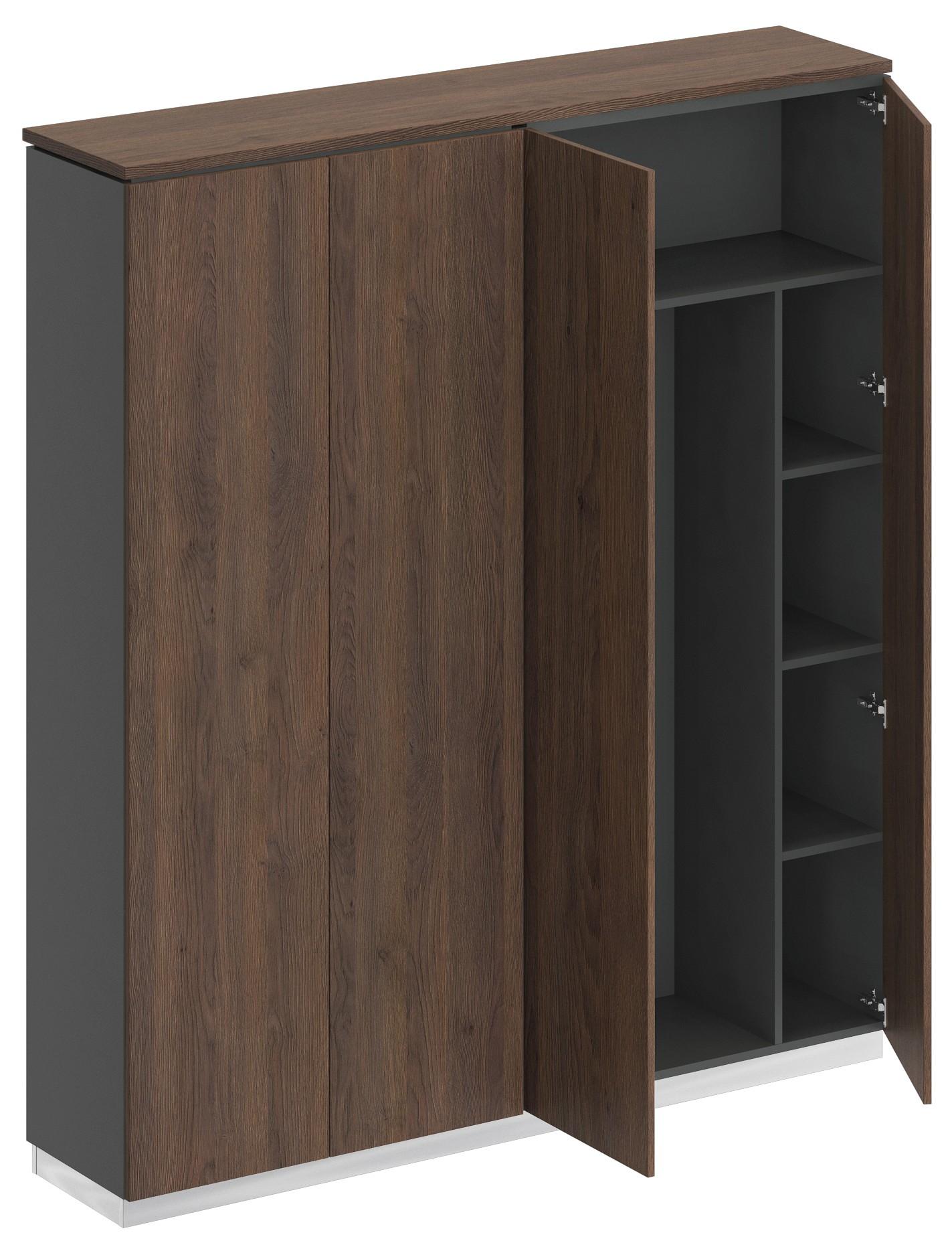 Шкаф состоит из закрытого шкафа для документов и шкафа для одежды с дополнением под общим топом под общим топом и цоколя на 2 шкафа.