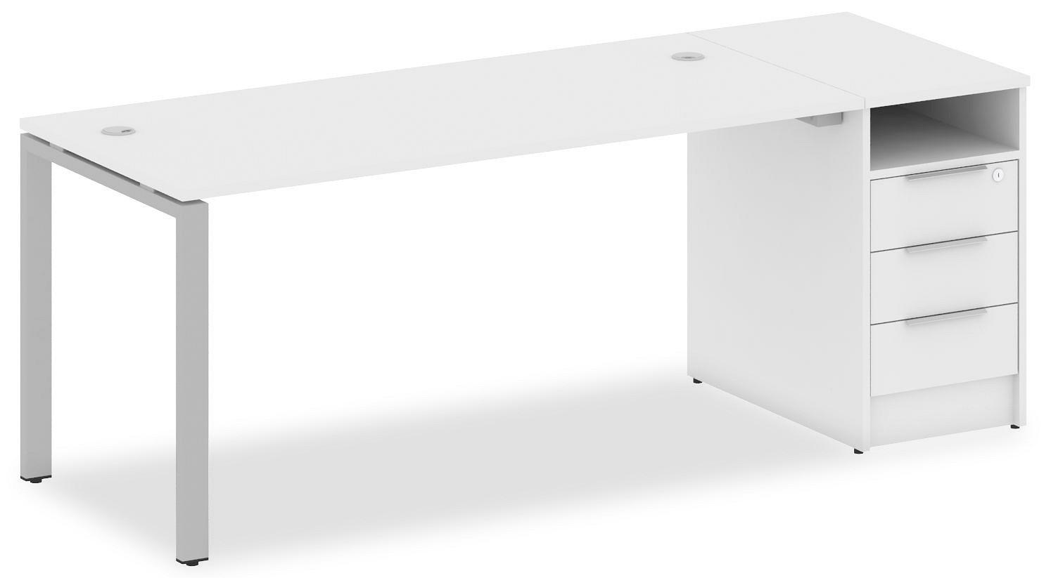 • 3 ящика. Для изготовления корпуса был выбран ЛДСП Е1, металл в оттенке белый, серый, завершает дизайн матовый верхний слой, гармонично сочетающийся со столешницей. Приобрести данную модель вы можете по привлекательной цене, равной 23082 руб.