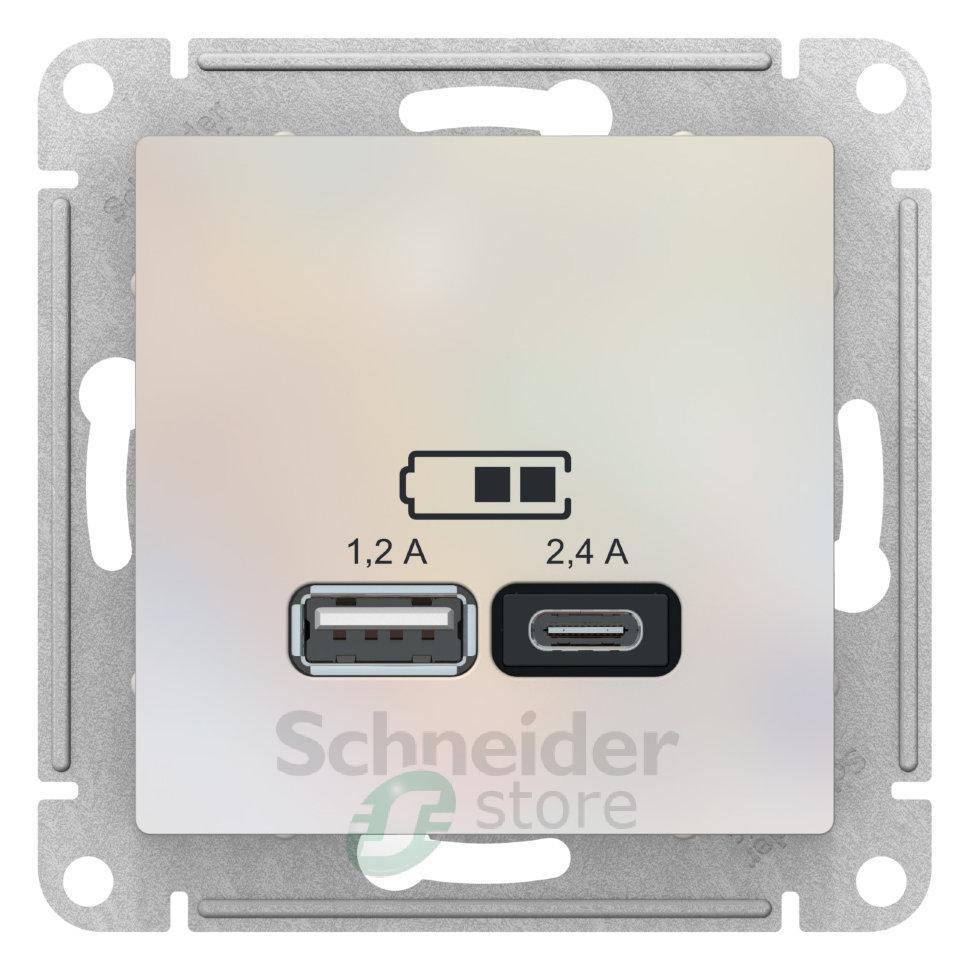 Розетка Schneider Electric AtlasDesign (цвет жемчуг) двойная USB с разъемами типа A+C