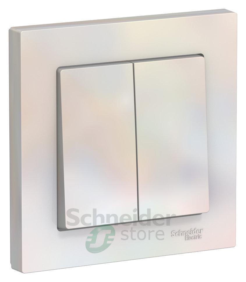 Выключатель Schneider Electric AtlasDesign (в сборе, цвет жемчуг) 2-клавишный подходит для сетей 250 В, на ток 10 А.