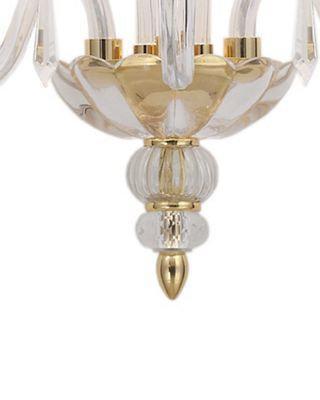 МАТИАС. Огонь золота и холодный глянец стекла идеально сочетаются в образе сдержанно-нарядной "МАТИАС". Плавные линии рожков поднимаются вверх и венчаются чашами в виде цветка. А множество прозрачных завитков с каплями хрустальных подвесов наполняют образ модели.