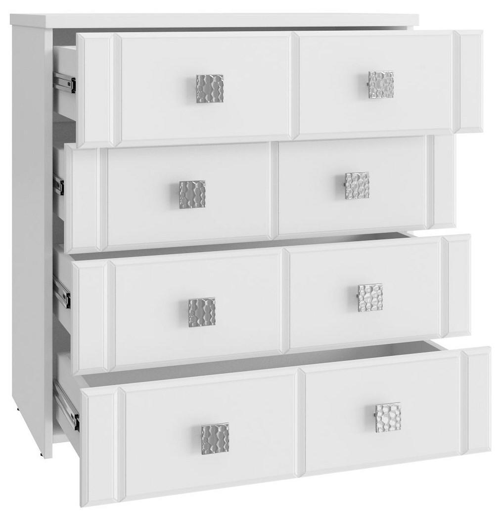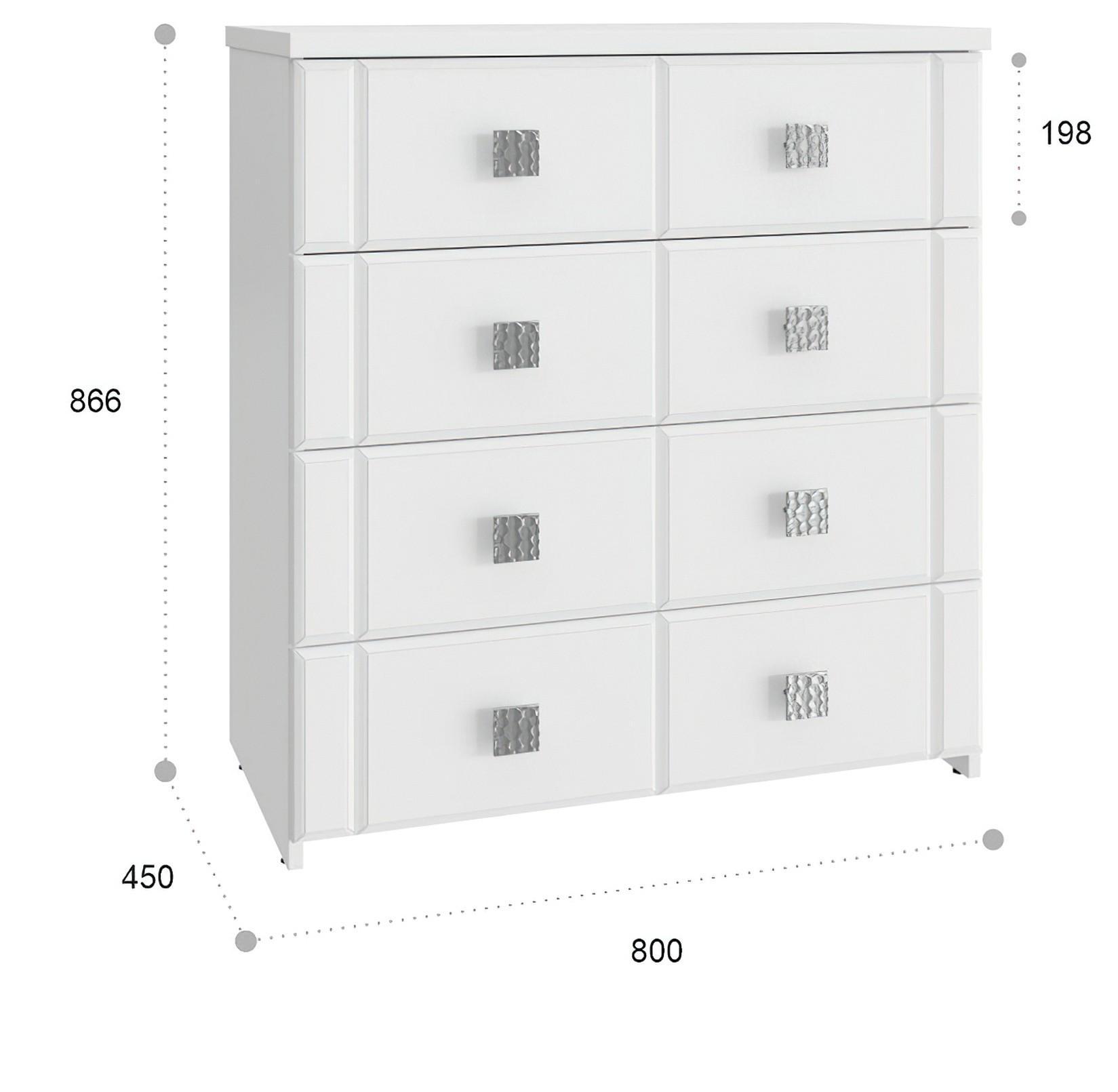 Мелочи создают общее настроение в интерьере, особенно, если лежат не на своем месте. Справиться с этой задачей поможет комод Изабель ИЗ-50К KOM_IZ-50K_1, сделанный актуальным брендом Компасс-мебель. Данная модель входит в коллекцию «Изабель» и стоит 13968 руб. Производитель предлагает следующую комплектацию: 4 ящика. Матовый корпус выполнен в благородном оттенке «белое дерево», тонко перекликающимся с расцветкой фасада (белый структурный), изготовленного из качественного сырья (МДФ). Благодаря оптимальным размерам комода (изделие длиной 866 мм, шириной 800 мм и выступом 450 мм), вы сможете расположить в нем все необходимое, при этом сохранив полезное пространство в помещении.