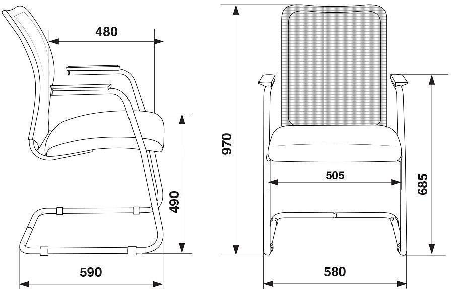 Ширина сиденья - 500 мм. Глубина сиденья - 470 мм. Высота сиденья - 450 мм.