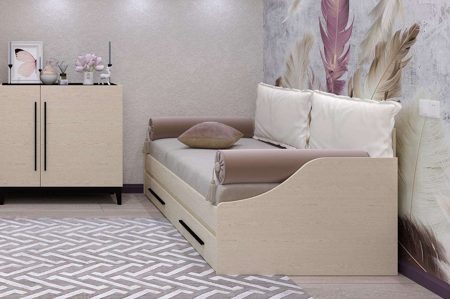 Благодаря спальному месту 900×2000 мм кровать будет удобна как для взрослого человека, так и для маленького члена семьи. Корпус кровати изготовлен из высококачественного ЛДСП класса эмиссии Е1, что гарантирует отсутствие вредных испарений и абсолютную безопасности для вашего дома.