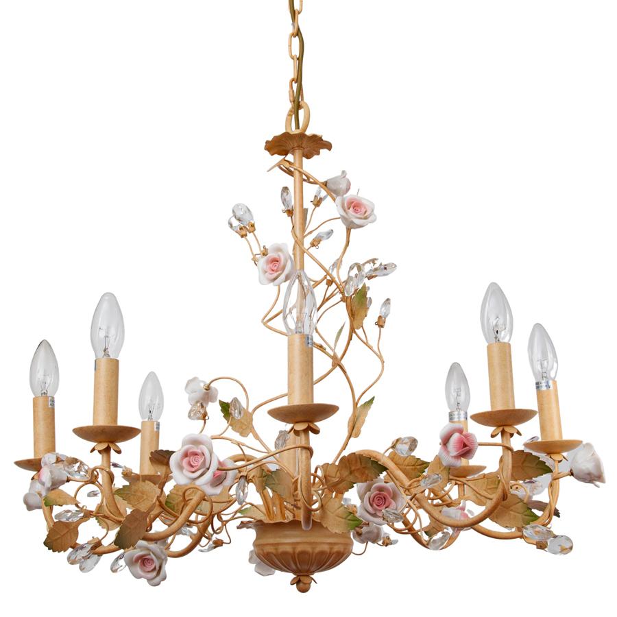 Данная модель входит в состав коллекции Suzanne и исполнена в стиле флористика. Люстра имеет высоту 600 мм и диаметр 650 мм. Работает при напряжении 230 V.