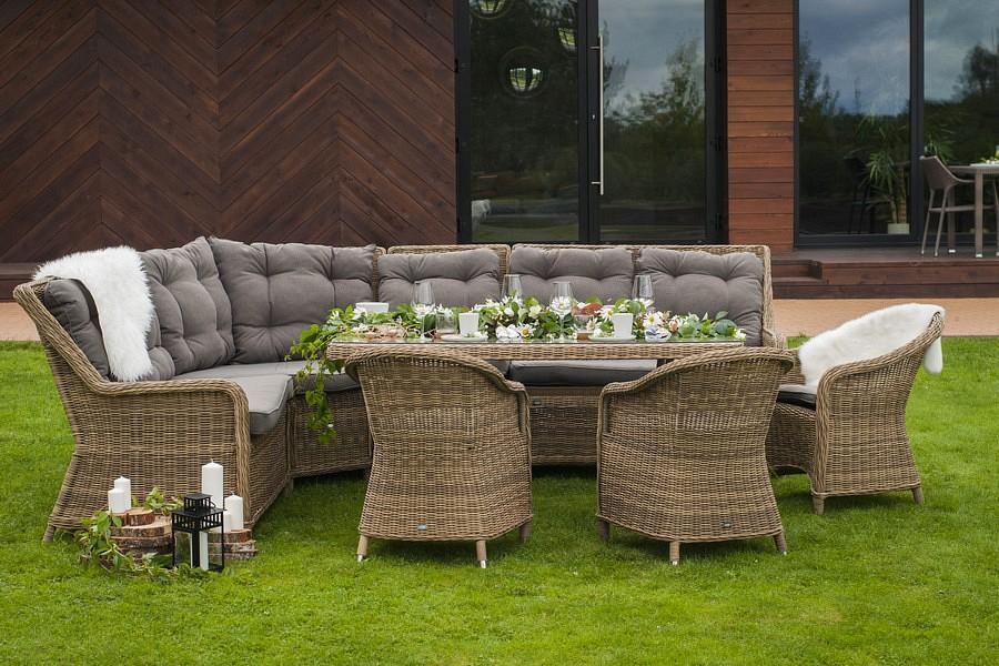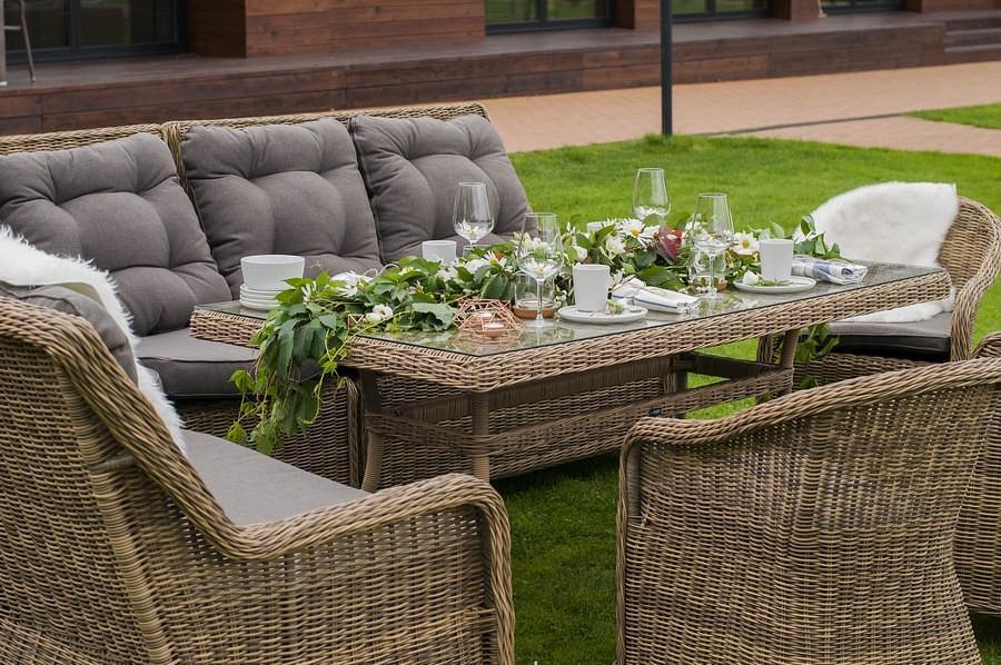 Подушки выполнены из водостойкой полиэфирной ткани для защиты мебели от дождя и солнца.