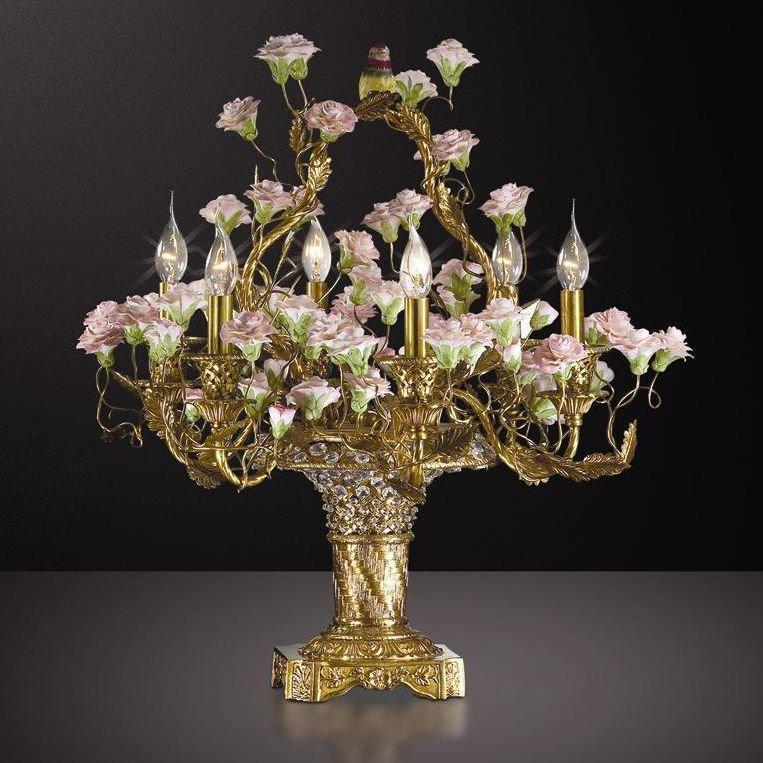 КЭТИ. Настольная лампа 6-х рожковая "КЭТИ" на основании из латуни украшенным египетским хрусталем Asfour, усыпанная нежными керамическими цветочками, создаст в Вашем помещении комфорт и уют.
