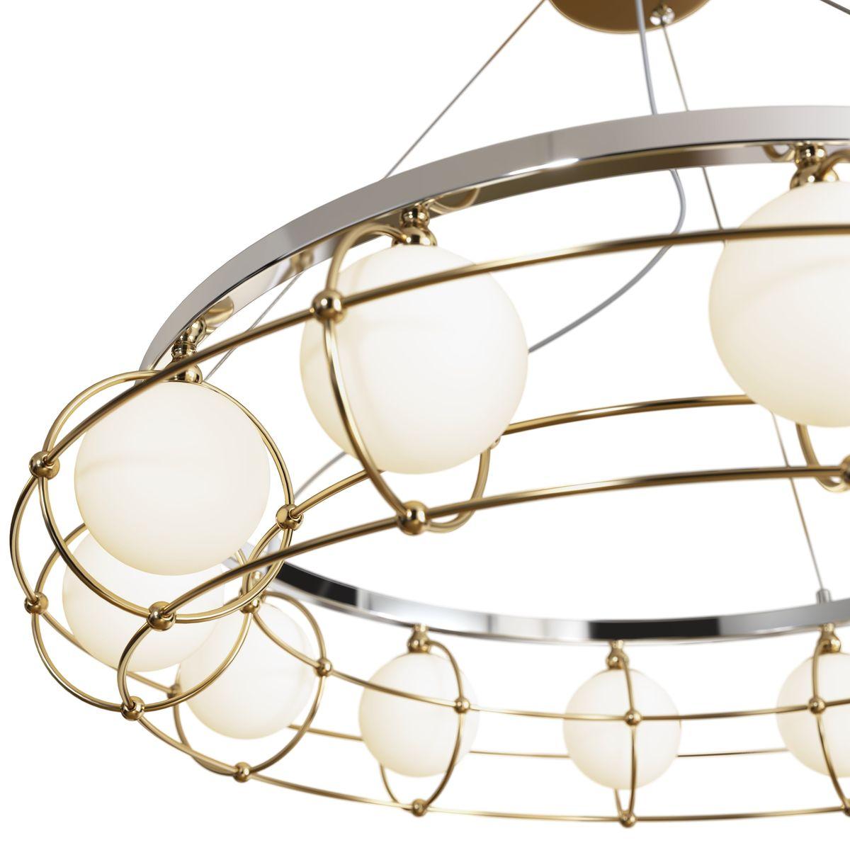 Необыкновенная модель MOD312PL-12GCH от немецкой компании Maytoni относится к коллекции Carcass и отлично подойдет для установки на потолок в гостиной, оформленной в стиле хай-тек. Подвесная люстра Maytoni Carcass MOD312PL-12GCH с плафонами в виде шаров осветит помещение площадью 60 кв. м. Производитель Maytoni рекомендует использовать для устройства галогеновые лампы с цоколем G9 и мощностью 40 W. Прибор произведен с использованием материалов: стекло и металл и может использоваться для натяжного потолка. Основным цветом товара является белый и золотой. Подвесная люстра MOD312PL-12GCH продается по цене 72390 руб. Торопитесь сделать заказ в интернет-магазине SvetONe.