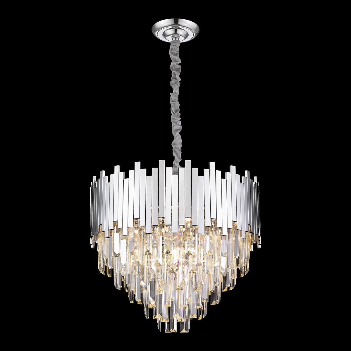 Великолепная модель WE137.12.103 от немецкой компании Wertmark относится к коллекции Calogera и отлично подойдет для установки на потолок в гостиной, оформленной в стиле модерн. Подвесная люстра Wertmark Calogera WE137.12.103 с конусными плафонами осветит помещение площадью 26.7 кв. м. Производитель Wertmark рекомендует использовать для устройства лампы накаливания с цоколем E14 и мощностью 40 W. Прибор произведен с использованием материалов: хрусталь и металл и может использоваться для натяжного потолка. Основным цветом товара является хромовый и прозрачный. Подвесная люстра WE137.12.103 продается по цене 62710 руб. Торопитесь сделать заказ в интернет-магазине SvetONe.