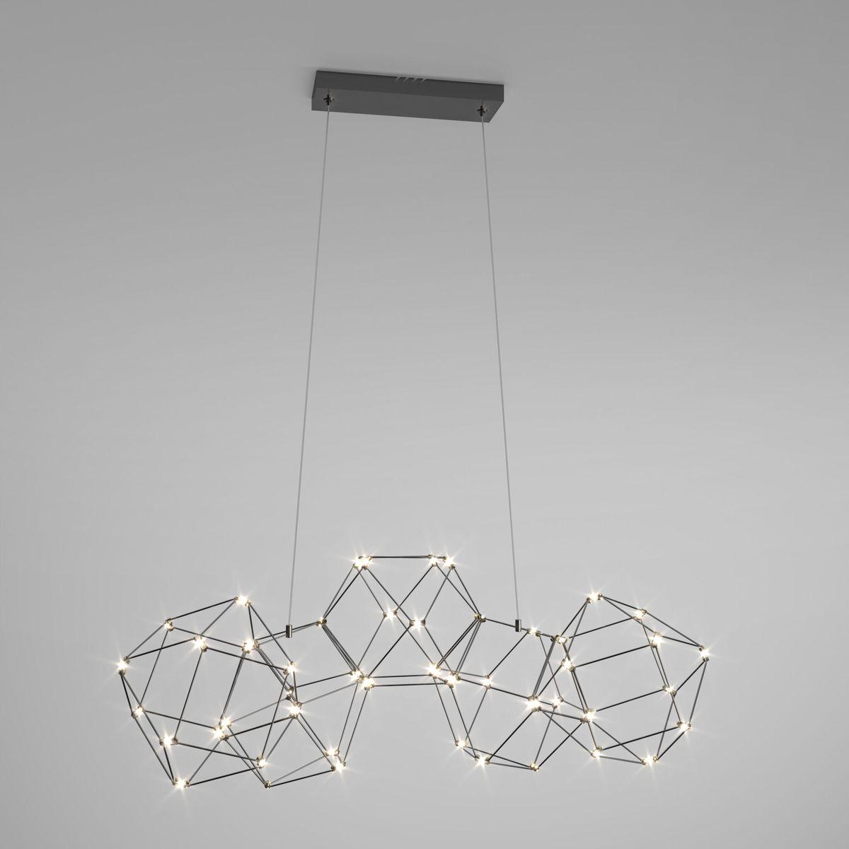 Превосходная модель 90168/5 черный жемчуг от российской компании Eurosvet относится к коллекции Uma и отлично подойдет для установки на потолок в гостиной, оформленной в стиле хай-тек. Подвесной светодиодный светильник Eurosvet Uma 90168/5 черный жемчуг с плафонами в виде многогранника осветит помещение площадью 4 кв. м. холодным светом. Осветительный элемент встроен в конструкцию и не требует приобретения дополнительных лампочек. Прибор произведен с использованием материала: металл и может использоваться для натяжного потолка. Основным цветом товара является черный. Торопитесь сделать заказ в интернет-магазине SvetONe.