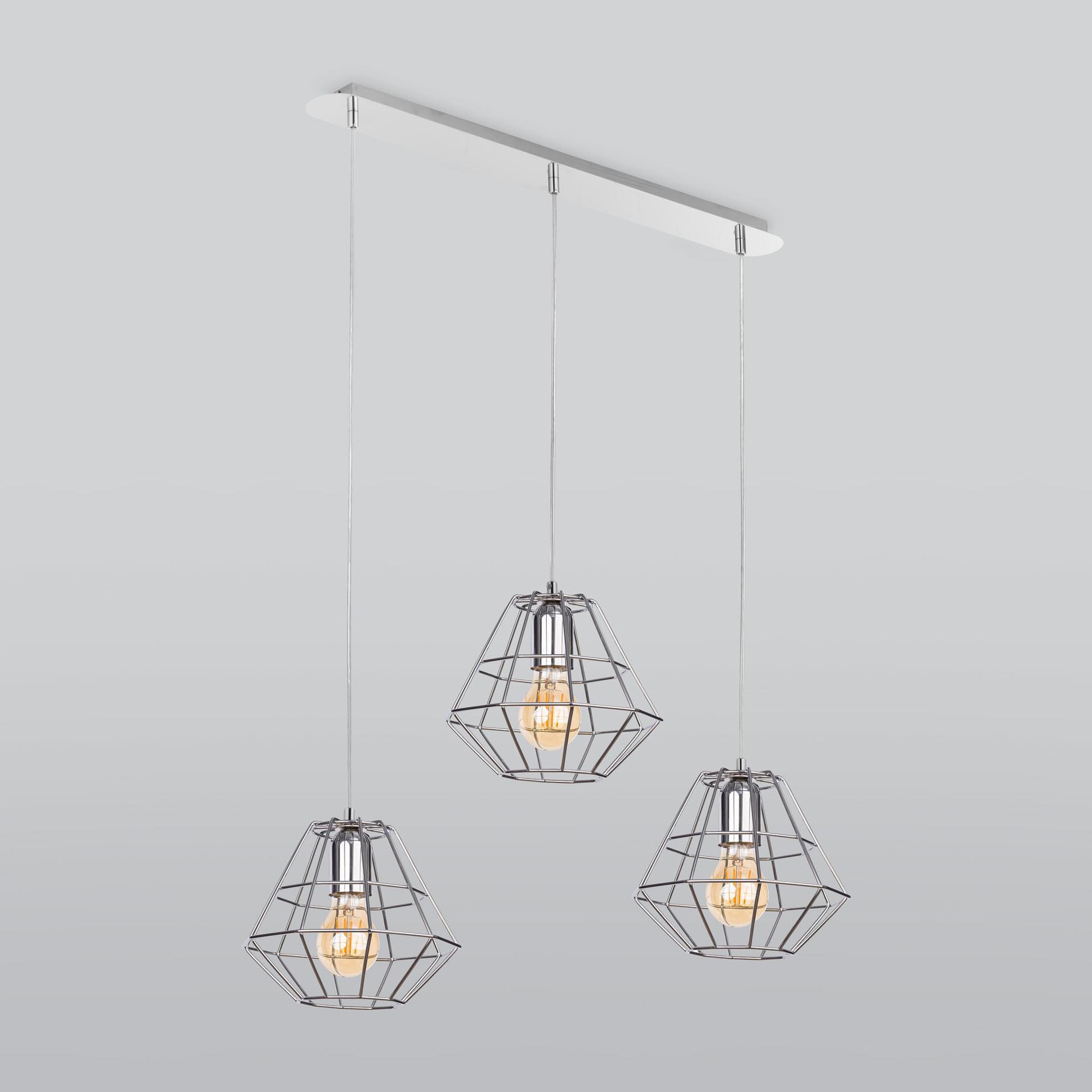 Подвесной светильник 2575 Diamond Gold в цвете хром предназначен для создания дополнительного освещения и акцентной подсветки в современных интерьерах. Светильник со сменными лампами E27 создаст качественное освещение на площади 12 м кв. и подсветит рабочие зоны на кухне, в гостиной, в кабинете и в других местах. Трехрожковый светильник с металлическими плафонами оборудован системой регулировки высоты подвеса, позволяющей размещать изделие на разных уровнях, уменьшая или увеличивая угол рассеивания светового потока. Подвесной светильник легко устанавливается на любых потолках при помощи монтажной планки. В интернет-магазине Минимир вы сможете купить подвесной светильник с плафоном с доставкой по Москве, Санкт-Петербургу и России.