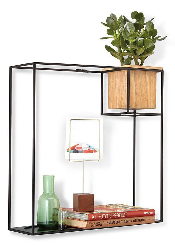 Бренд Umbra создает много мебели, которая украшает интерьер и делает его функциональнее. Сегодня рады предложить вам прекрасную модель, которая относится к серии «Cubist» и представлена артикулом FD_470754-427. Полка навесная Cubist – это необычная продукция, имеющая запоминающийся дизайн и высокие эксплуатационные характеристики. Прочный корпус изготовлен из дерево, металл и представлен в актуальном цвете (бежевый, черный). Полка имеет следующие размеры: 388 мм в ширину, 386 мм в высоту и 115 мм в глубину, не забудьте измерить свободную площадь стены перед покупкой изделия, которое стоит 5690 руб.