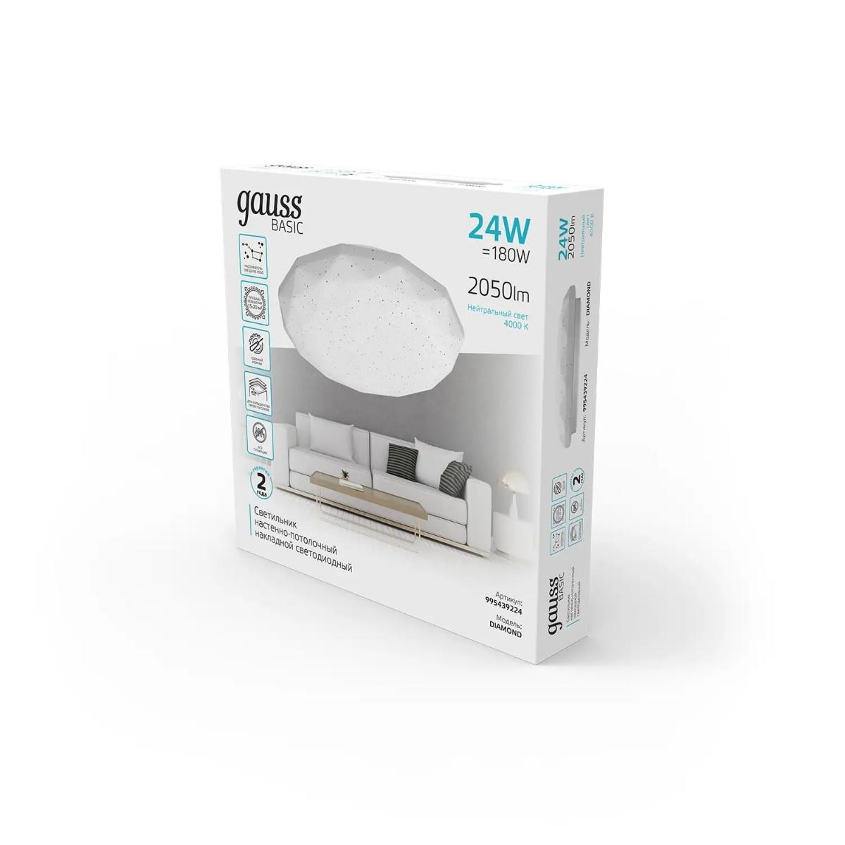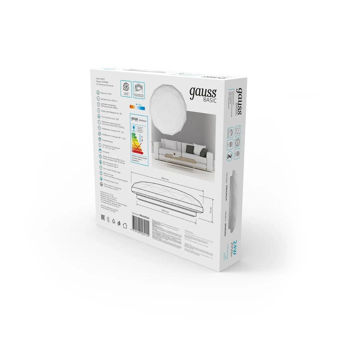 Потолочный светодиодный светильник Gauss Basic Space Diamond 995439224