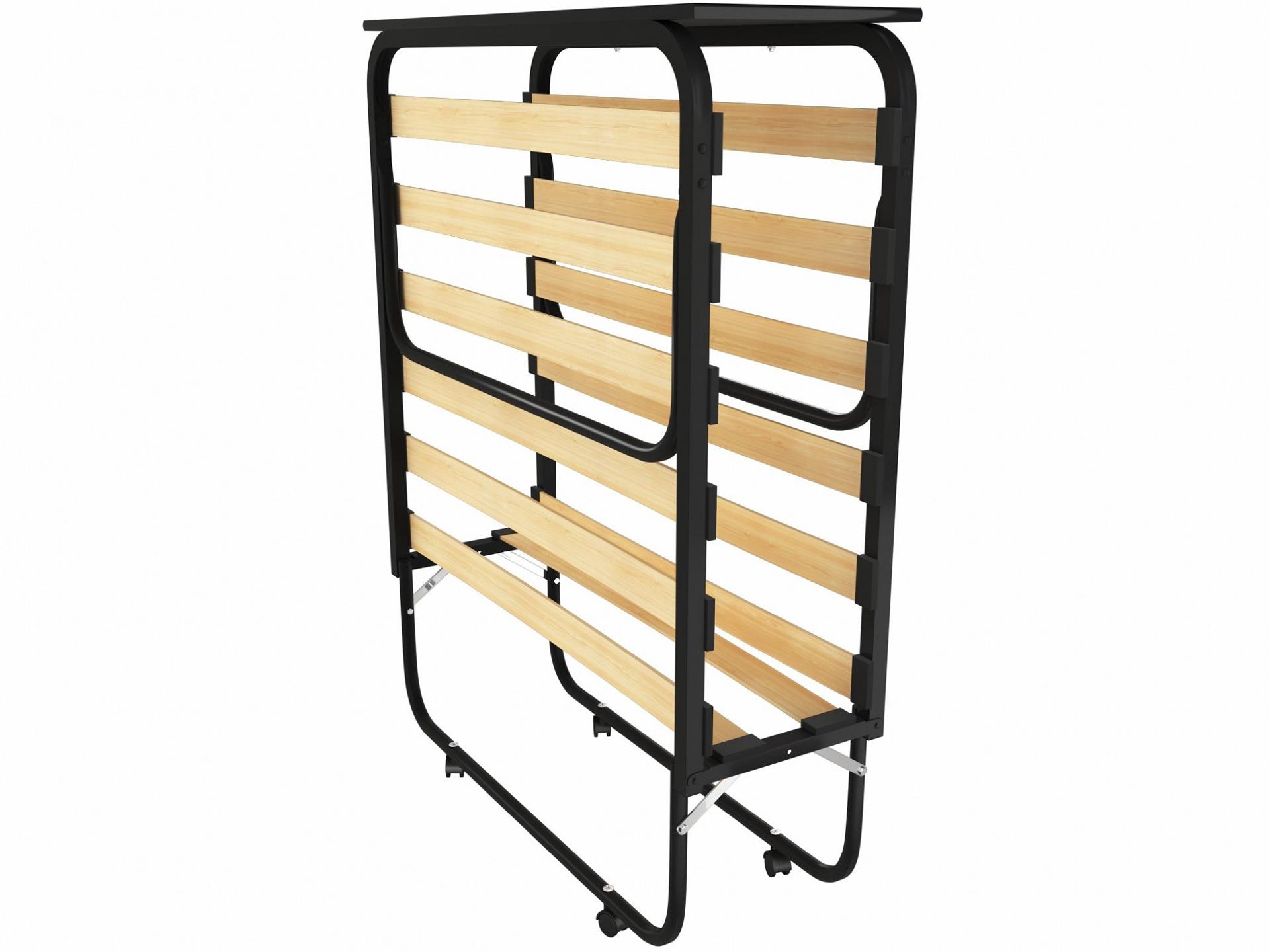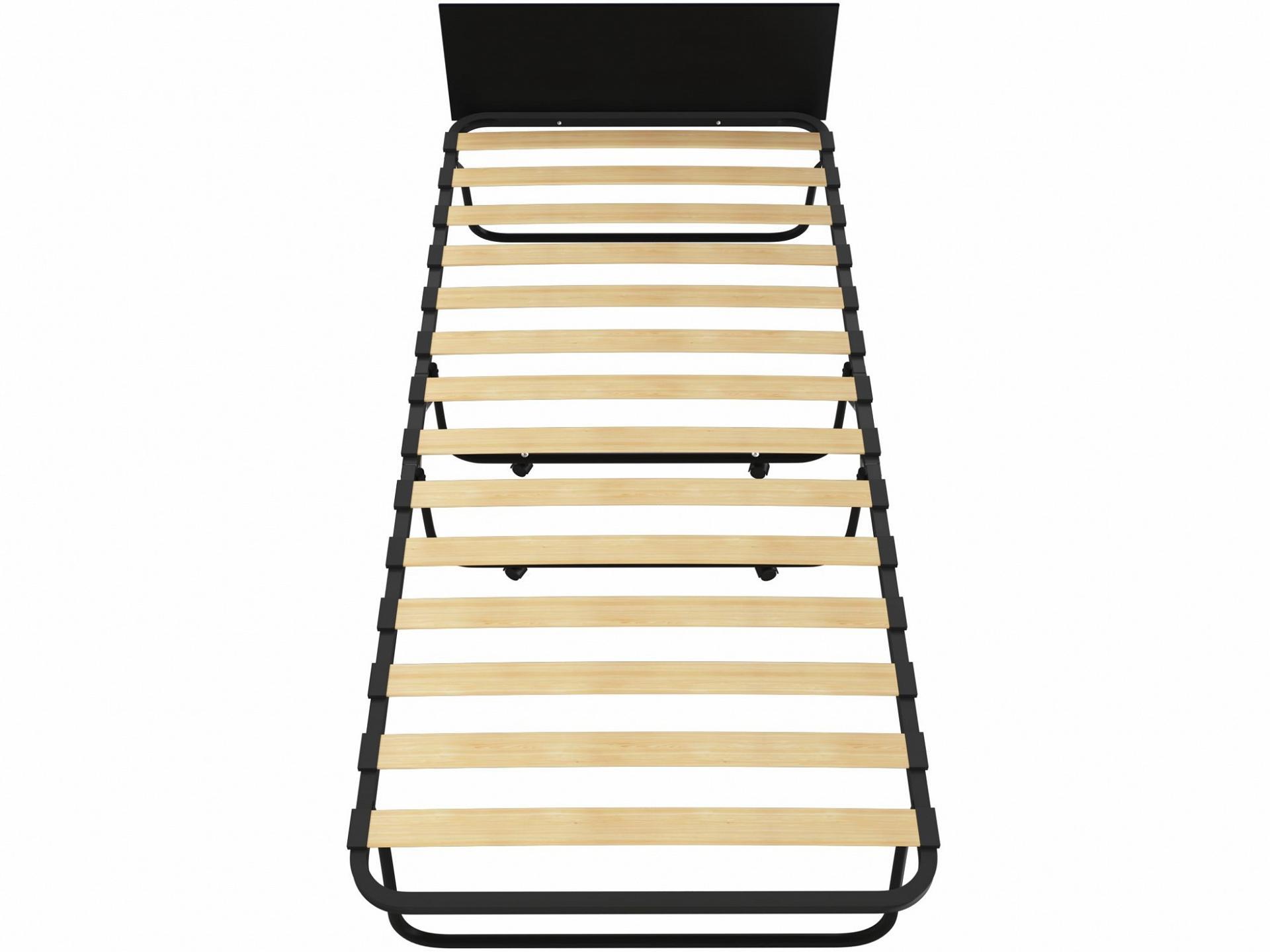 Основание кровати раскладушки — латофлекс, современный высокотехнологичный материал из гнуто-клееной фанеры, используемый при изготовлении ортопедических оснований современных кроватей.