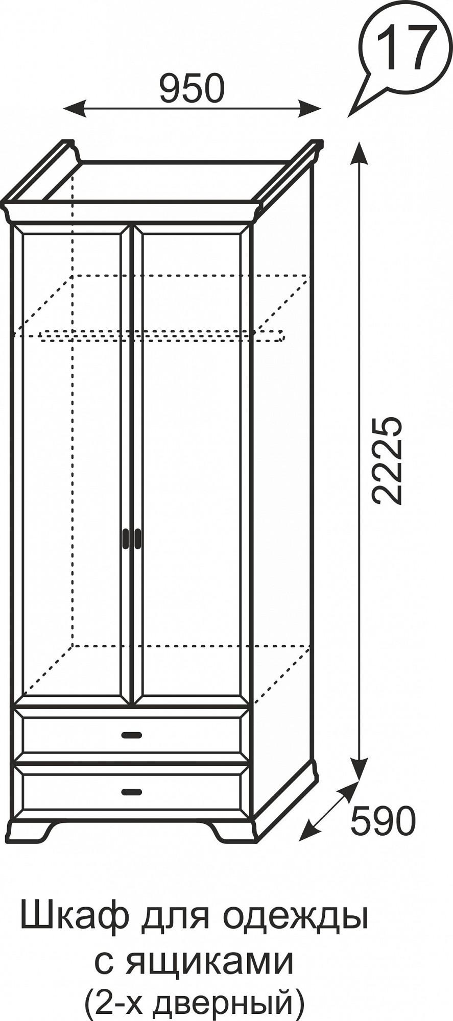 Шкаф платяной Венеция 17 создан брендом Ижмебель (Россия) и входит в серию Венеция. Матовый фасад изготовлен из качественных и надежных материалов (ЛДСП Е1) и гармонично дополняет матовый корпус изделия. Шкаф платяной Венеция 17 наиболее актуален для таких помещений, как гостиная, кабинет, прихожая, спальня и имеет следующие габариты: 947 мм. в ширину, 2213 мм. в высоту, глубина шкафа составляет 589 мм. В комплектацию данной модели входит 1 полка, 1 штанга для вешалок, 2 дверцы, 2 ящика, входящие в комплект, а срок изготовления обычно не превышает 3 суток. На товар предоставляется гарантия 24 месяцев. Купить шкаф платяной венеция 17 можно в интернет-магазине Mebelion.ru за 24299 руб.