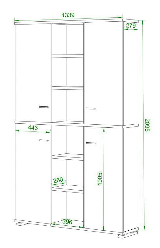 4 дверцы, 13 полок