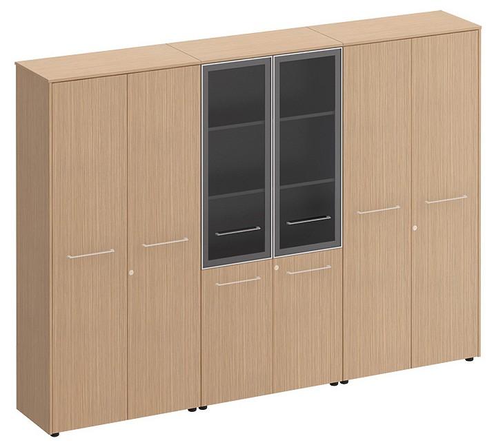 Шкаф комбинированный является стенкой, состоящей из шкафа со стеклом для документов, закрытого шкафа для документов и шкафом для одежды под общим топом.