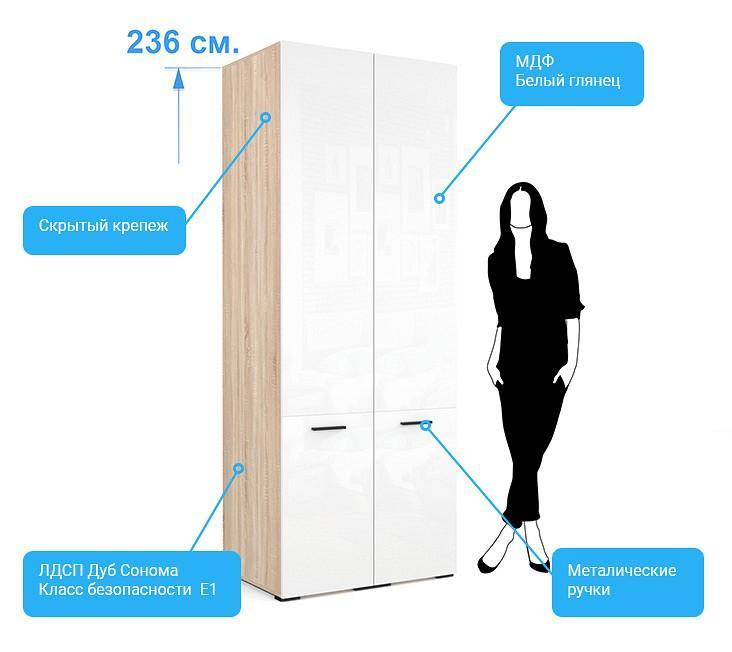 - Шкаф имеет высоту 236 см., что делает его максимально вместительным.