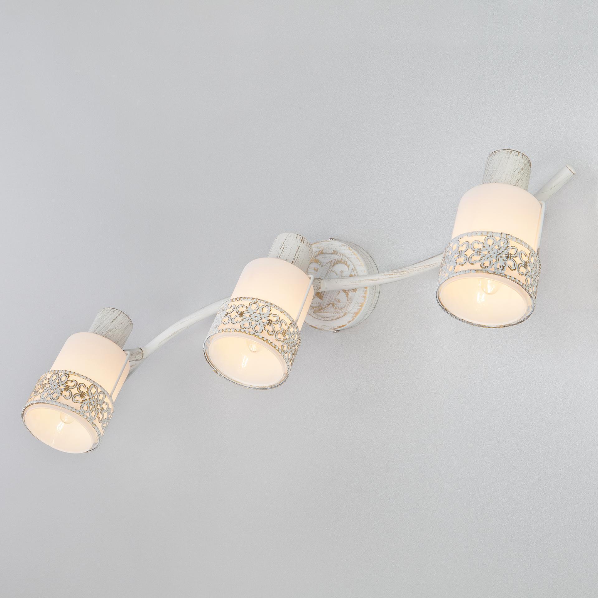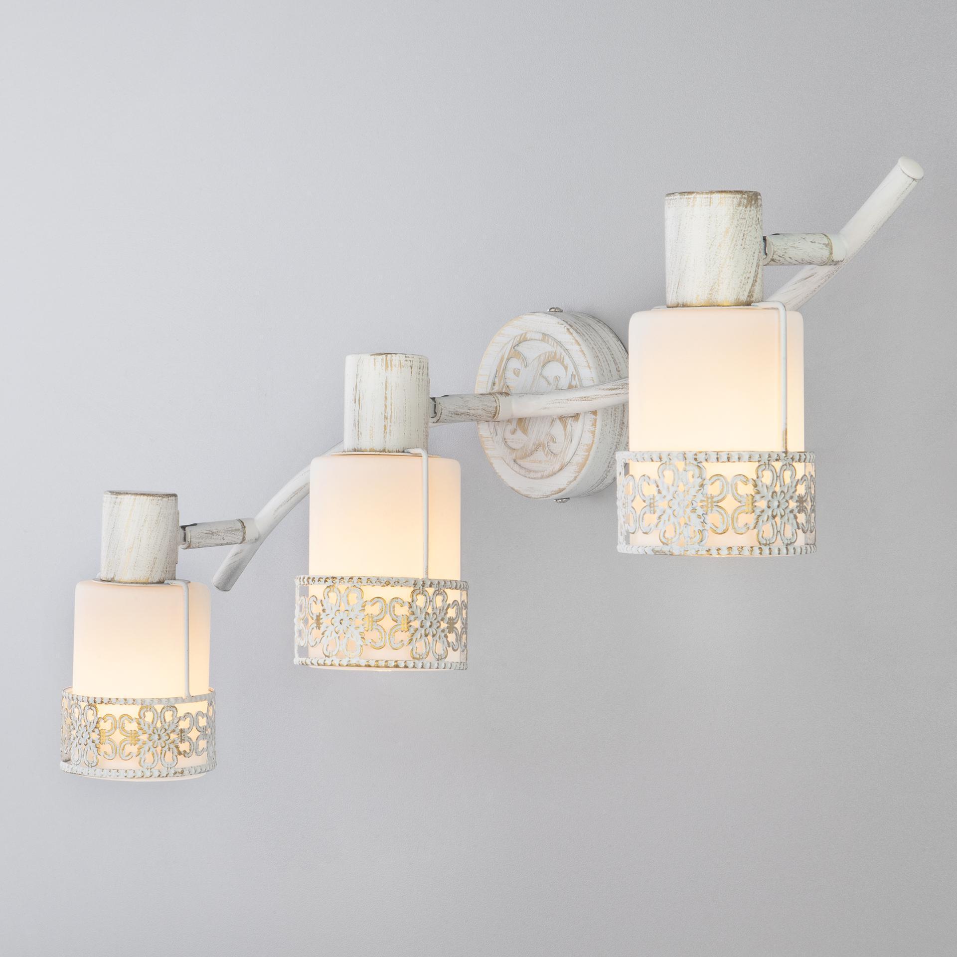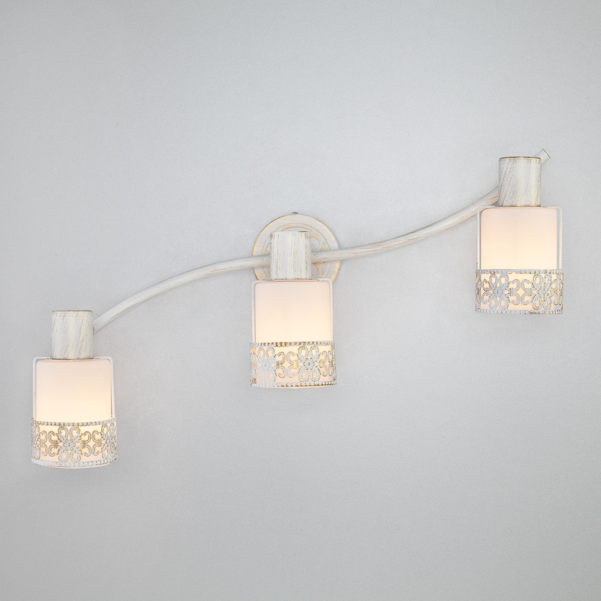 Спот с поворотным плафоном 20025/3 белый с золотом создаст качественное дополнительное освещение и станет эффектным дополнением к основному источнику света. Благодаря декоративному стеклянному плафону бра создает мягкое равномерное свечение, подходящее для комфортного чтения книг в вечернее время. В качестве источника света используются сменные лампы типа "Свеча" или "Шар" с цоколем E14. Патрон рассчитан на максимальную мощность ламп накаливания 40 Вт. Корпус светильника выполнен из высококачественного и прочного металла с надежным покрытием. Бра легко устанавливается при помощи крепежной планки, которая обеспечивает надежную фиксацию светильника на стене. В интернет-магазине Минимир вы можете купить настенный светильник с доставкой по Москве, Санкт-Петербургу и России.