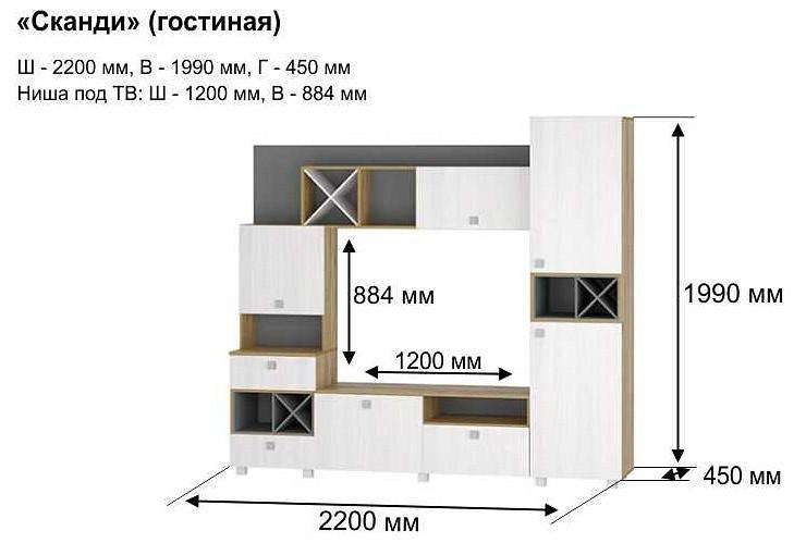 Стенка «Сканди» совмещает в себе современный стиль и комфорт, легкость и изысканность.