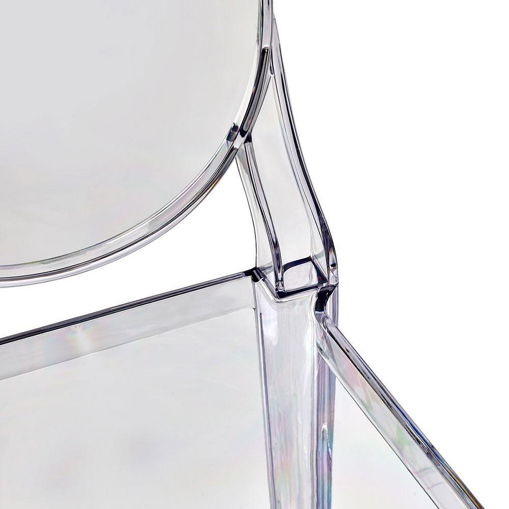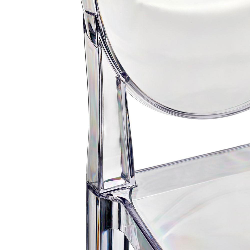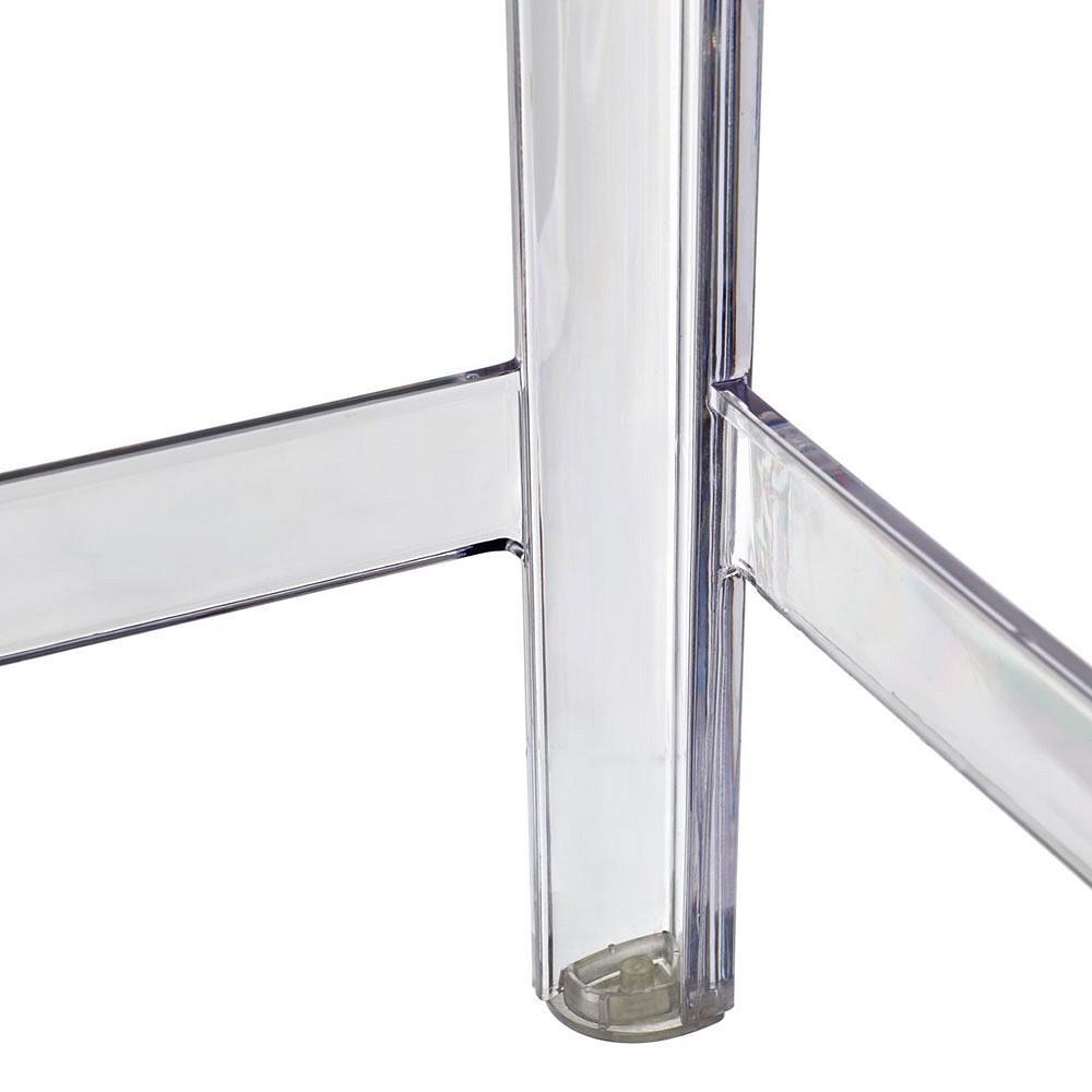 Барный стул Victoria Ghost изготовлен из прозрачного поликарбоната в единой литьевой форме, что обеспечивает стабильность конструкции, надёжность и долговечность в эксплуатации.