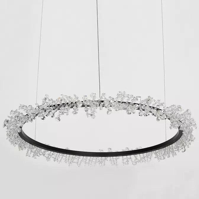 Данная модель входит в состав коллекции Halo Crystal Pendant и исполнена в стиле модерн. Светильник имеет высоту 1300 мм и диаметр 1800 мм. Работает при напряжении 230 V.