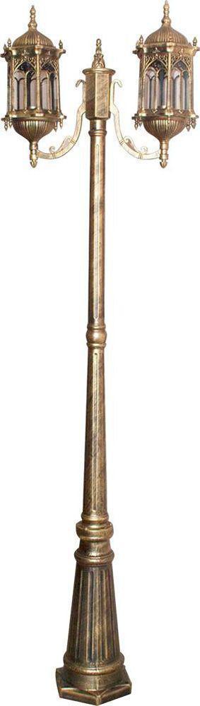 Светильник садово-парковый, серии «Багдад» (НТУ) FERON PL119 2*60W, E27, 230V, IP44, цвет черное золото, 6-и гранник, столб большой, 620*200*2100мм