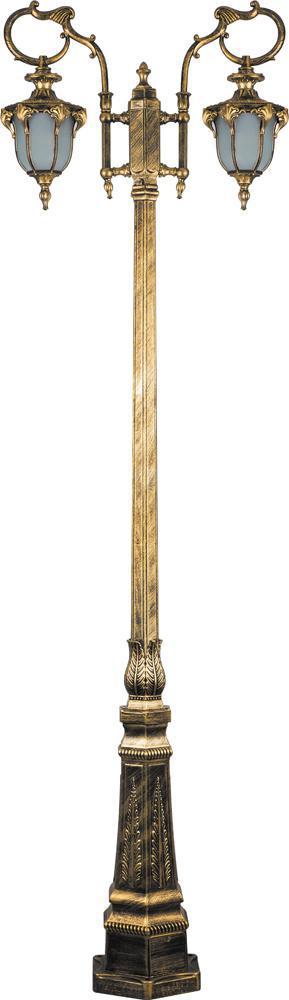 Светильник садово-парковый, серии «Флоренция» (НТУ) FERON PL4058 2*60W, E27, 230V, IP44, цвет черное золото, 6-и гранник, столб большой, 215*710*2250мм