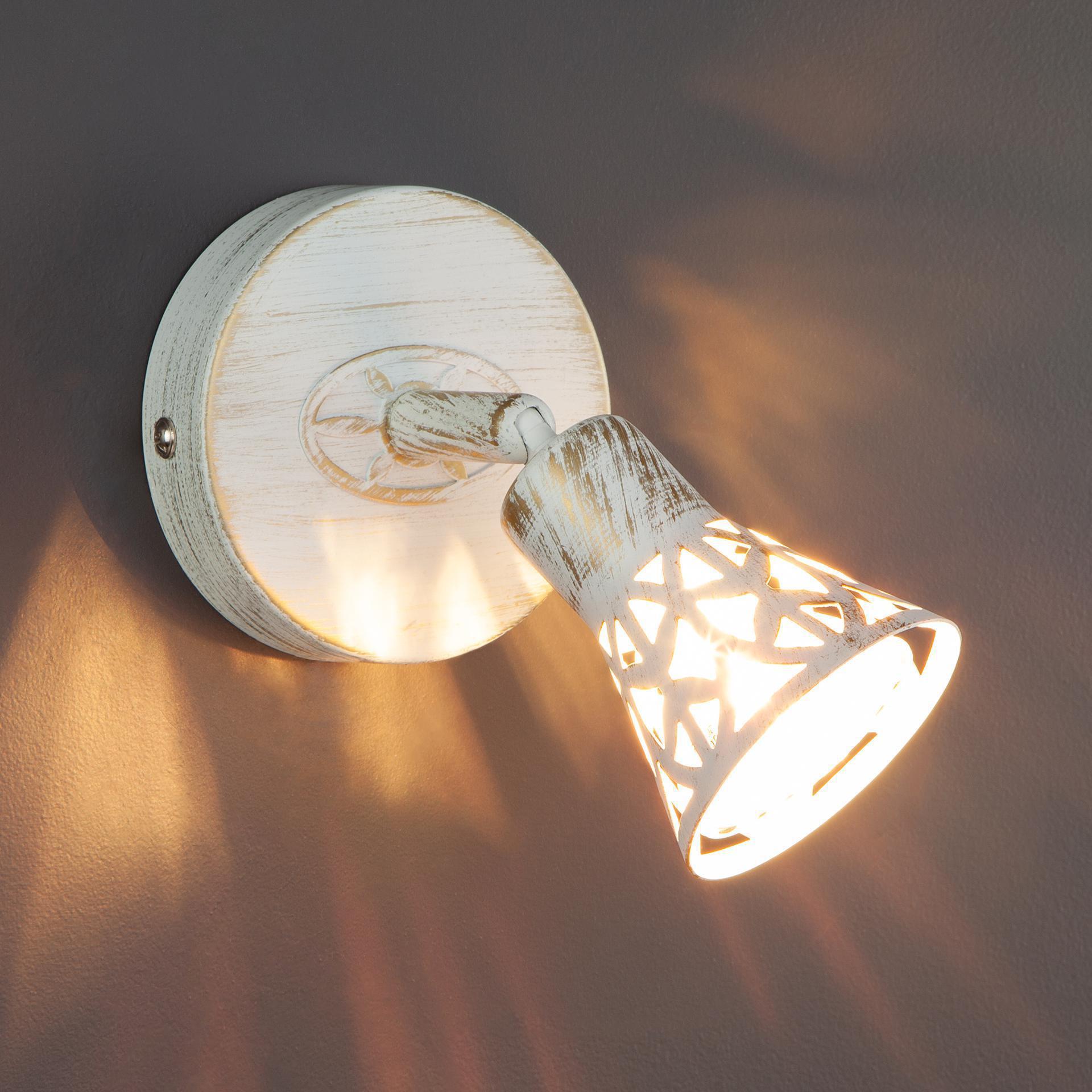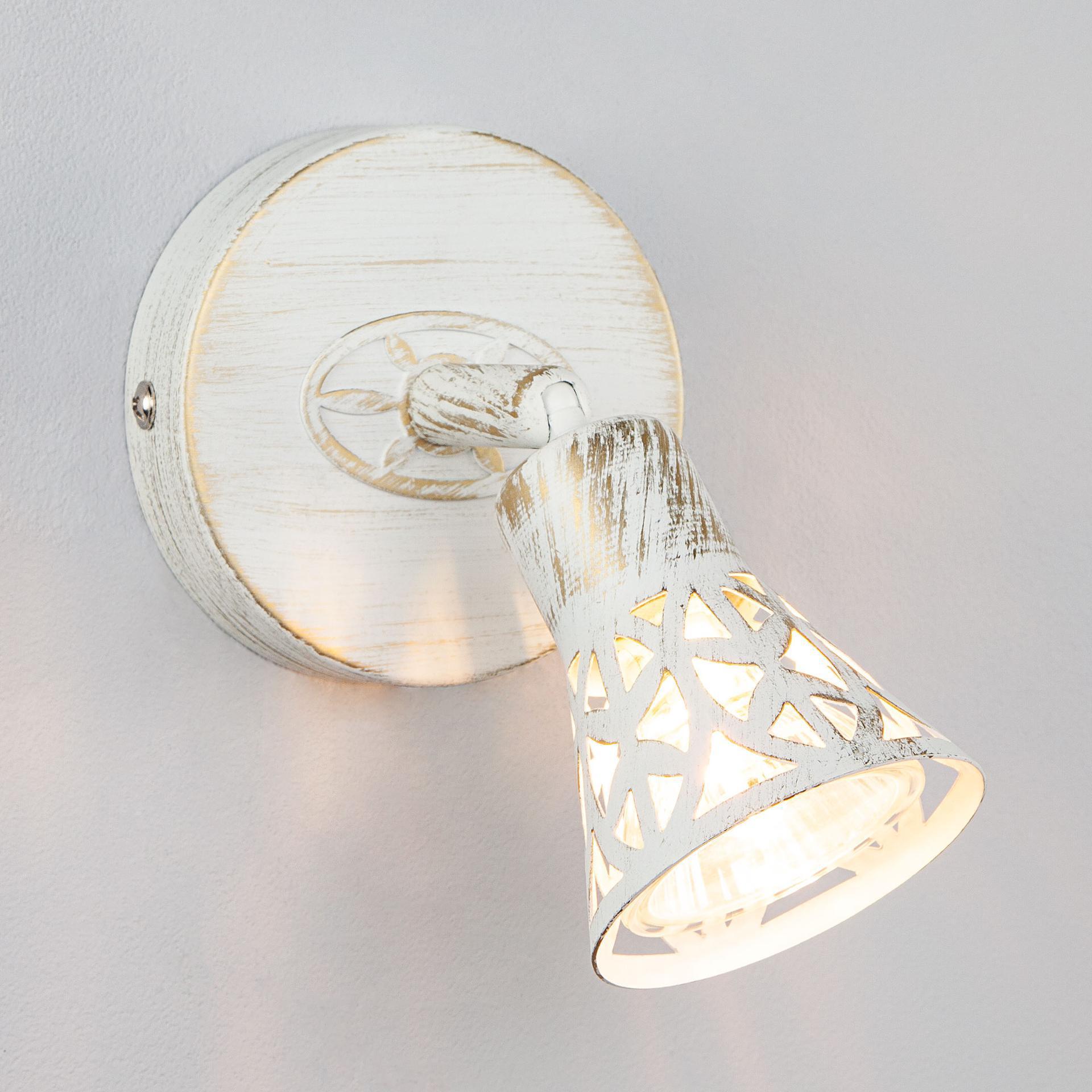 Светильник-спот с поворотным плафоном 20027/1 белый с золотом создаст качественное дополнительное освещение и станет ярким дополнением к основному источнику света. Благодаря поворотному металлическому плафону можно направлять световой поток в нужном направлении. В качестве источника света используются сменные лампы с цоколем G5.3. Патрон рассчитан на максимальную мощность ламп накаливания 50Вт. Корпус светильника выполнен из высококачественного и прочного металла с надежным покрытием. Бра легко монтируется при помощи крепежной планки, которая обеспечивает надежную фиксацию светильника на стене. В интернет-магазине Минимир вы можете купить настенный светильник с доставкой по Москве, Санкт-Петербургу и России.