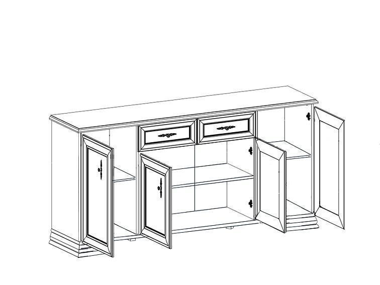 2 ящика, 3 полки, 4 дверцы
