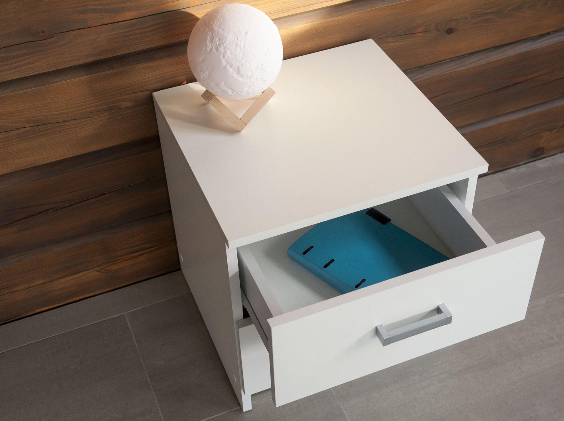 Когда все вещи лежат на своих местах – это залог уютного и аккуратного интерьера. Тем приятнее, когда зоной для хранения является вместительная и практичная тумбочка Атланта 420 HSBN_10003. Данная модель изготовлена компанией Hesby и входит в серию Атланта. Матовый корпус изделия выполнен из износостойкого материала (ЛДСП Е1) и окрашен в благородный оттенок «белый». Тумбочка Атланта 420 стоит 2570 руб.