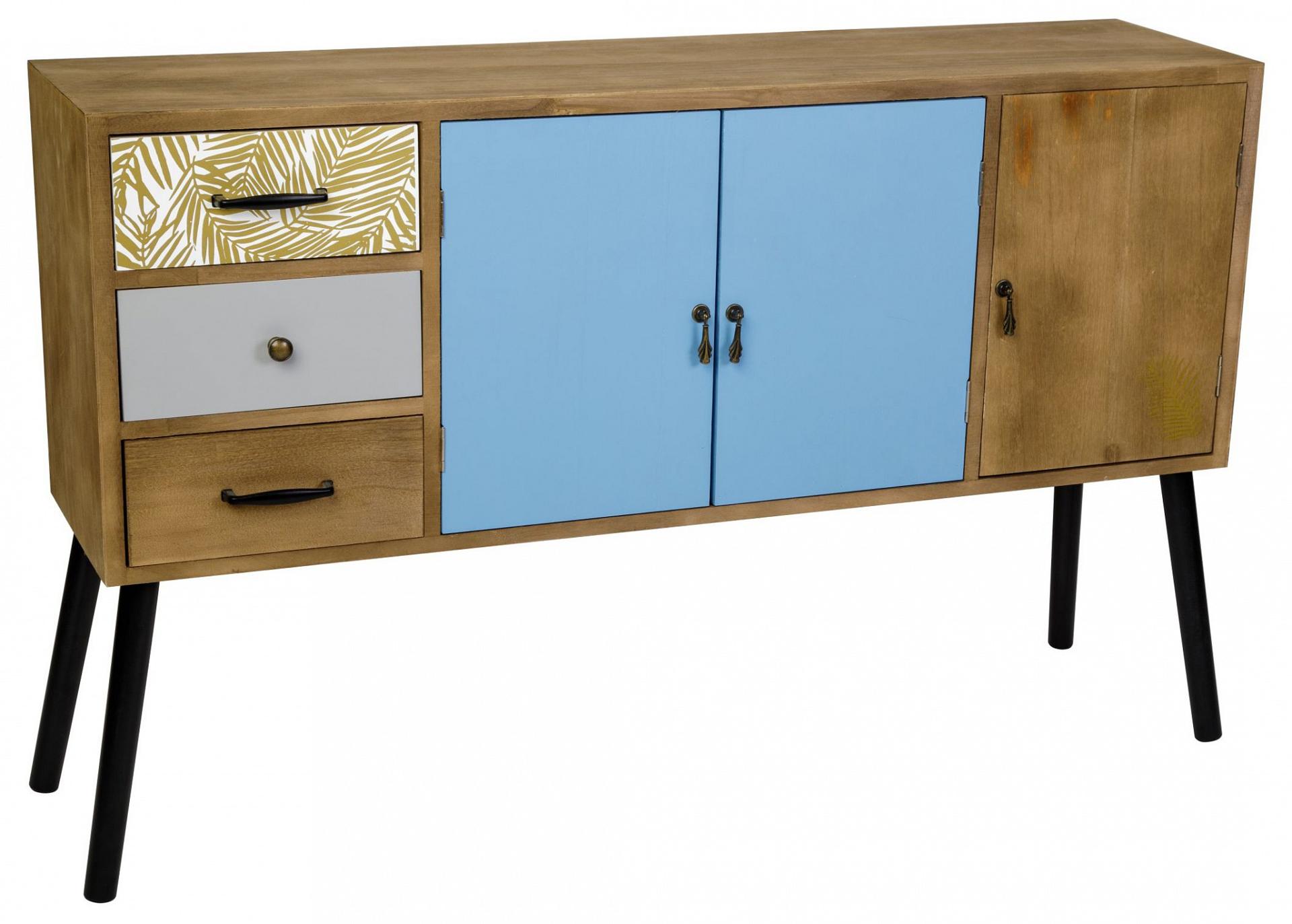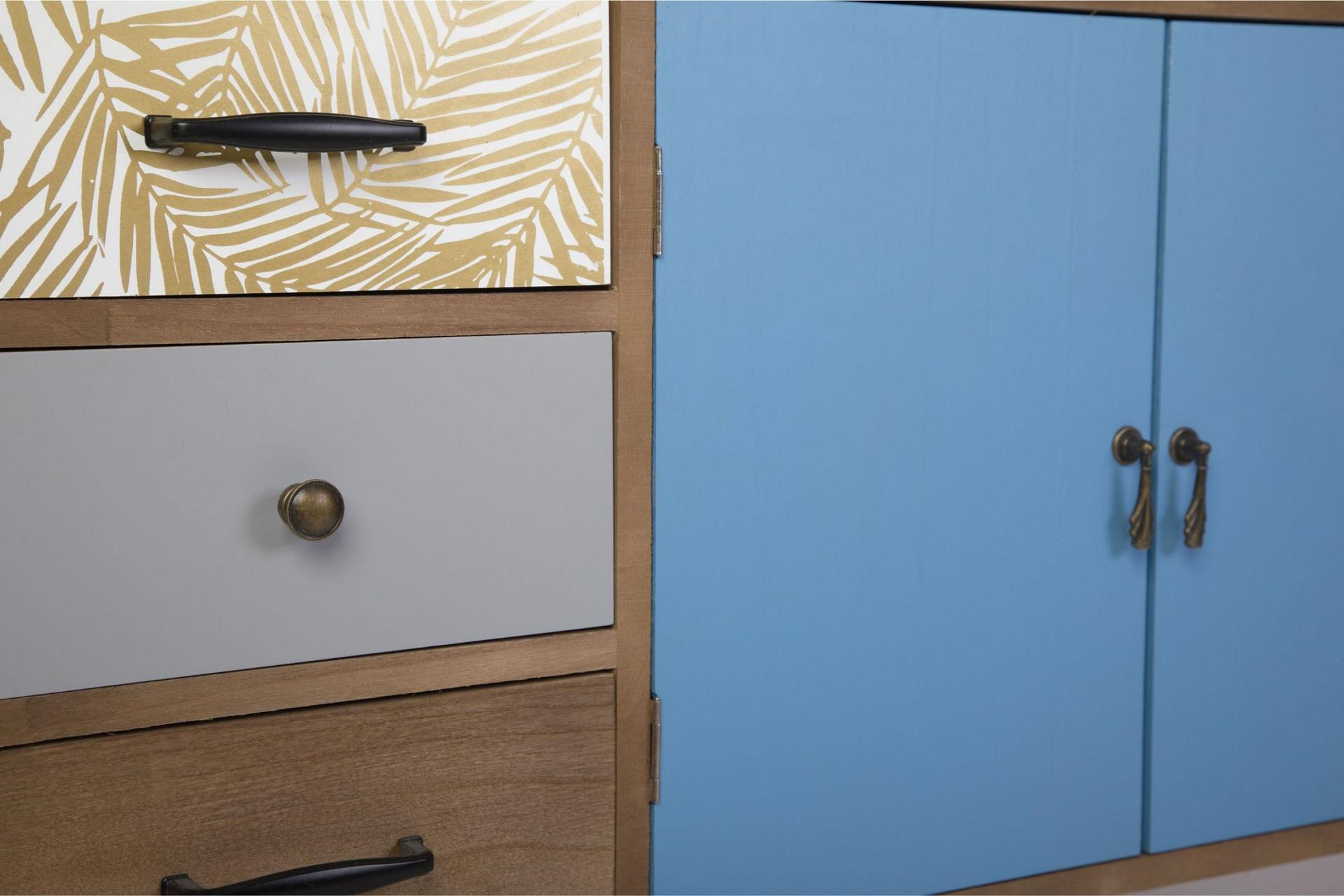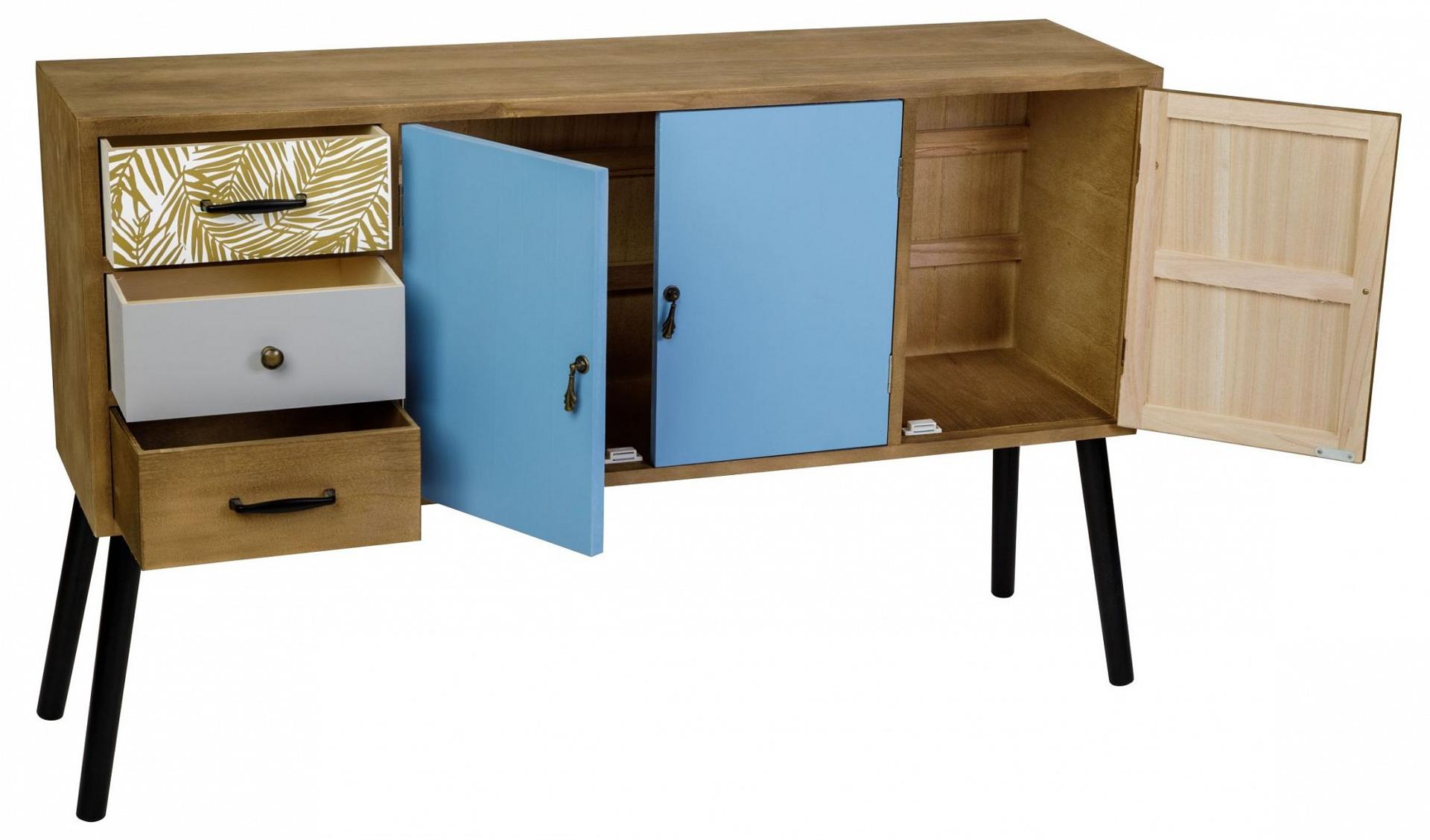 Корпус, ножки и ящики изготовлены из дерева (павловния войлочная), окрашены. В комплекте крепления для сборки.