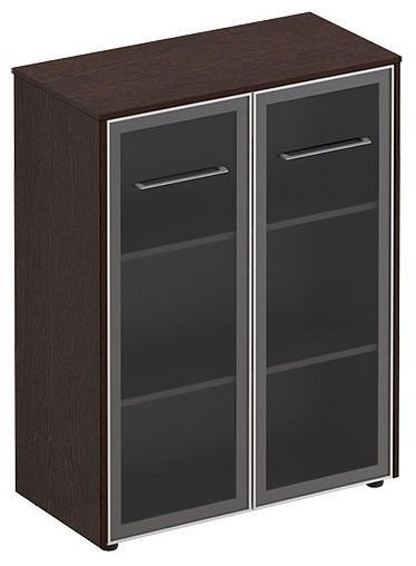 Тумба-витрина состоит имеет 1 регулируемую по высоте полку и 1 фиксированную по высоте полку. Проемы шкафа обеспечивают размещение стандартных папок CORONA высотой 320 мм.