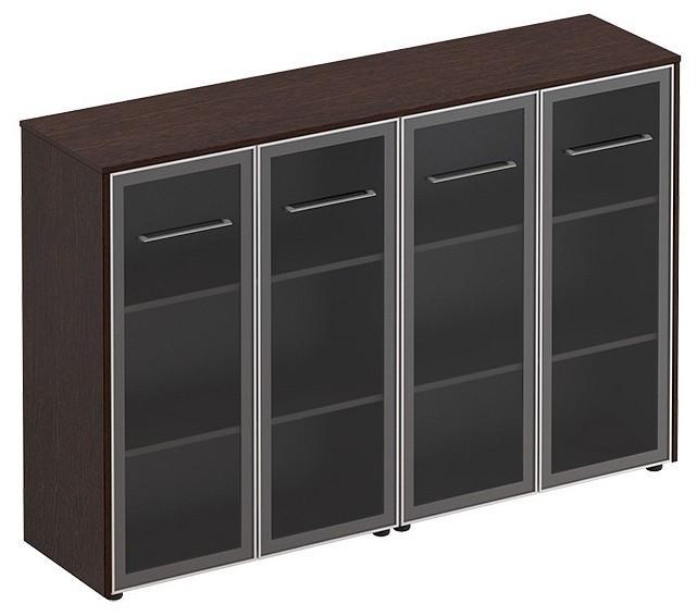 Тумба-витрина состоит из двух шкафов со стеклом для документов под общим топом.
