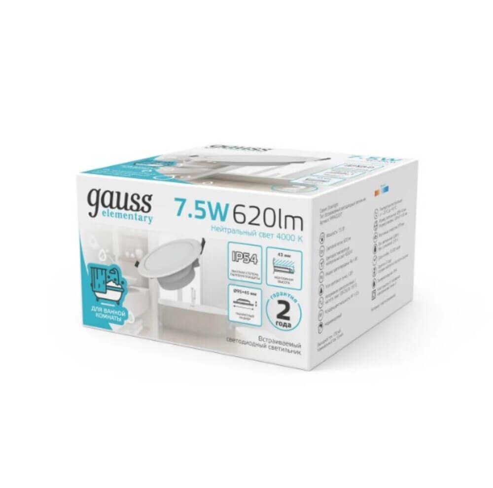 Встраиваемый светодиодный светильник Gauss Elementary Downlight 999420207